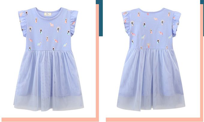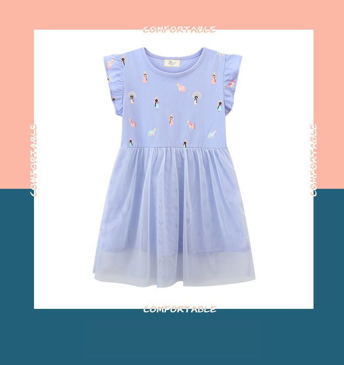 Jumping meters - 棉質圓領短袖網紗洋裝-獨角獸精靈-藍紫色