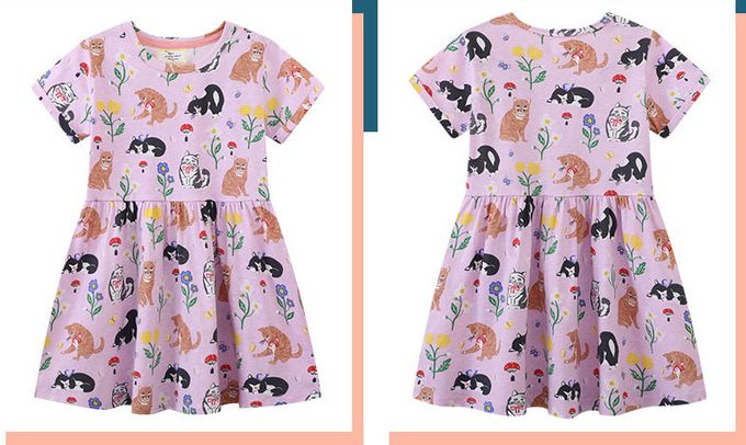 棉質圓領短袖洋裝-貓貓花園-紫色