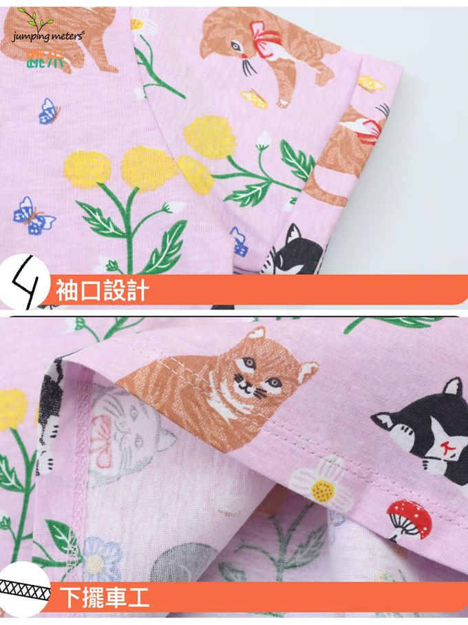 Jumping meters - 棉質圓領短袖洋裝-雲朵獨角獸世界-粉橘色
