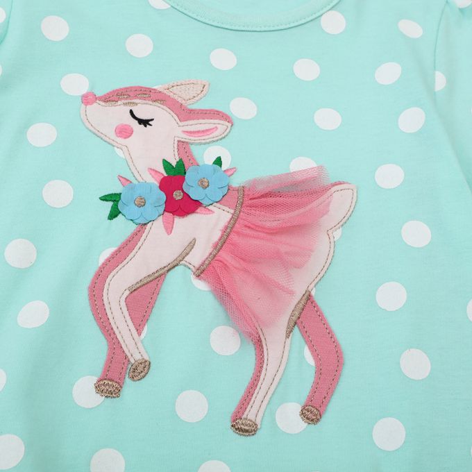 棉質圓領短袖洋裝-優雅小鹿-藍色
