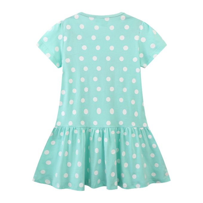 Jumping meters - 棉質圓領短袖洋裝-彩虹獨角獸-深藍色