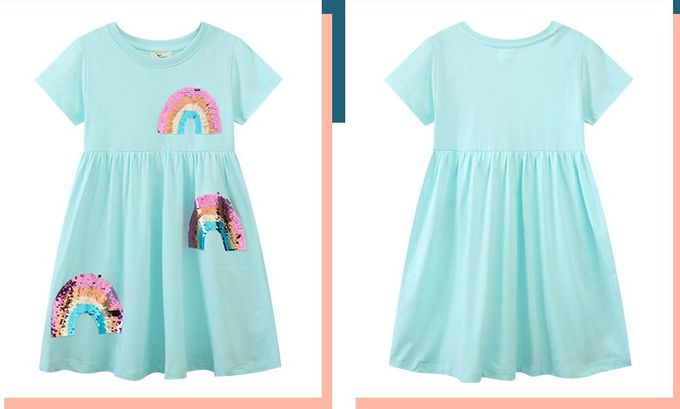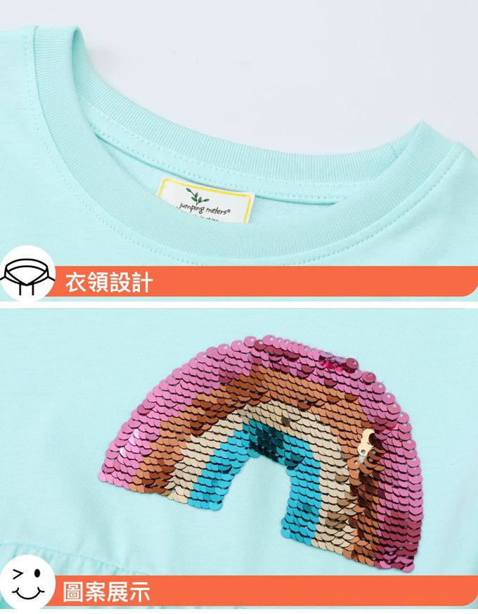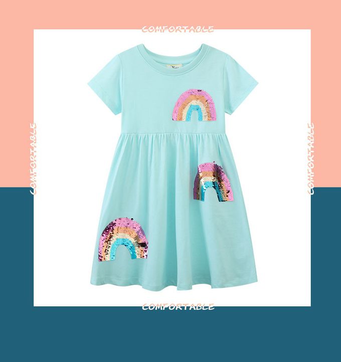 棉質圓領短袖洋裝-亮片彩虹-藍色