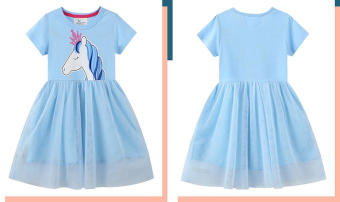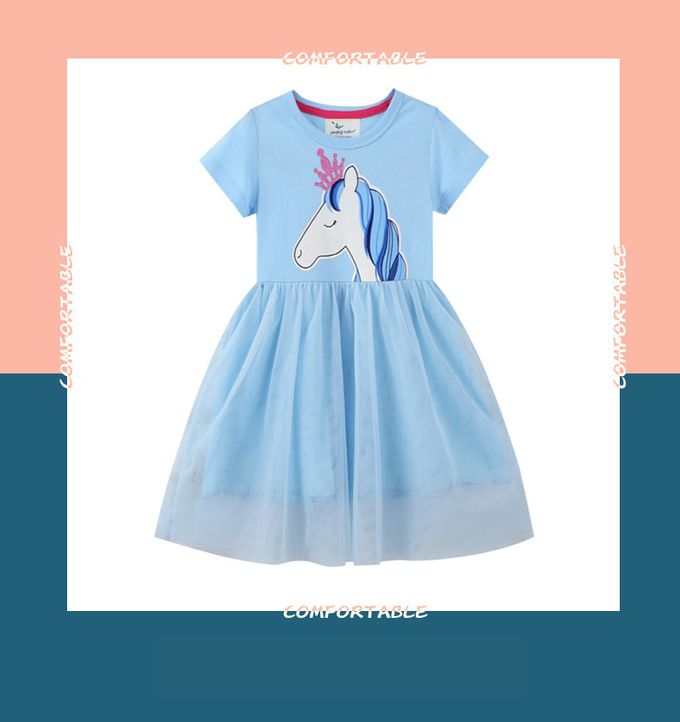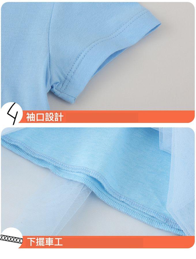 棉質圓領短袖網紗洋裝-獨角獸小公主-藍色