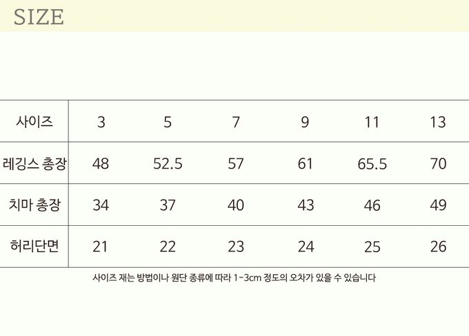 尺寸表由上而下為:尺寸、內搭褲總長、裙子總長、腰寬
