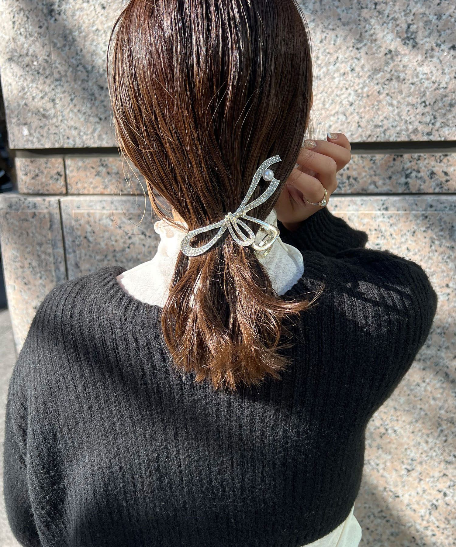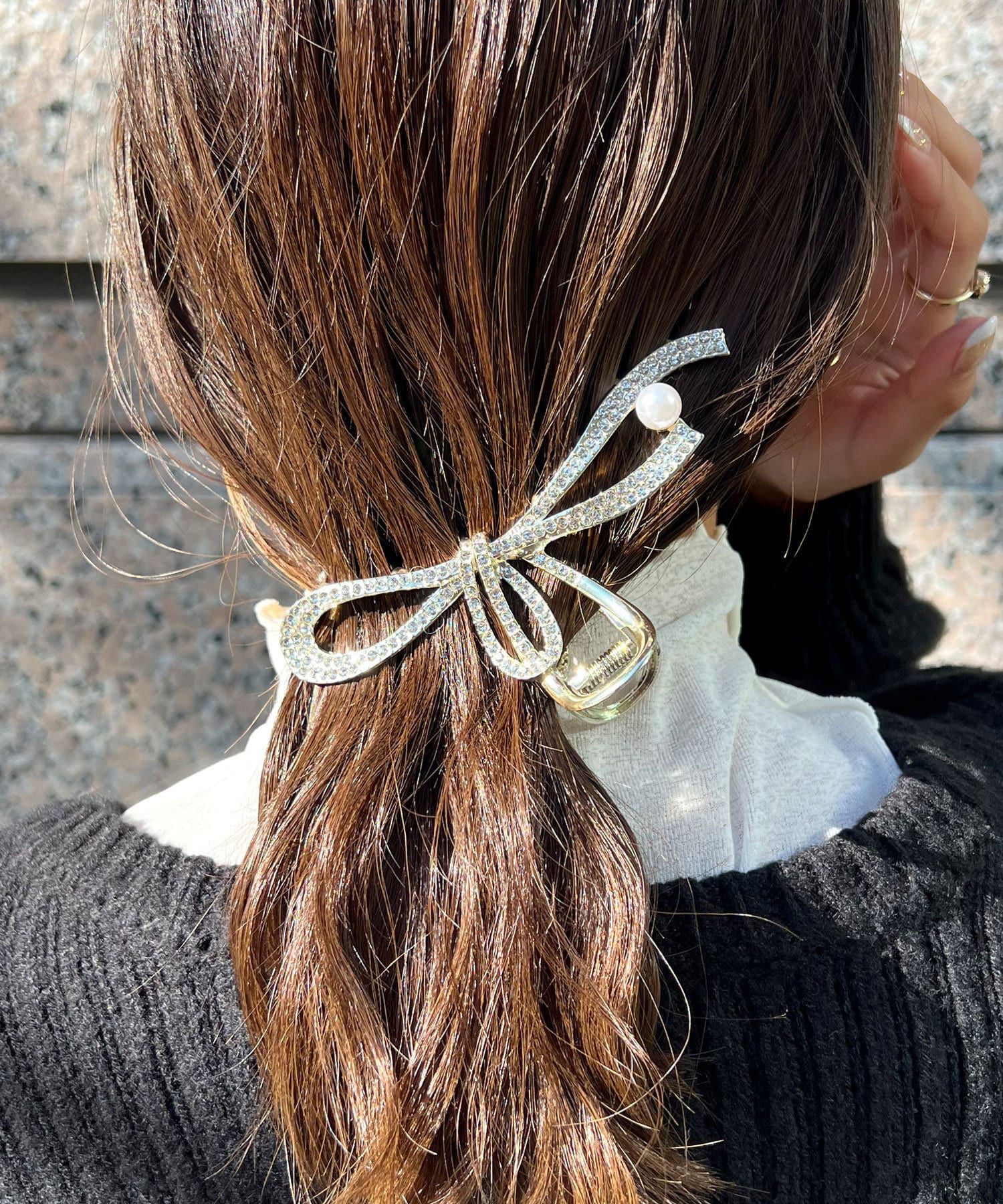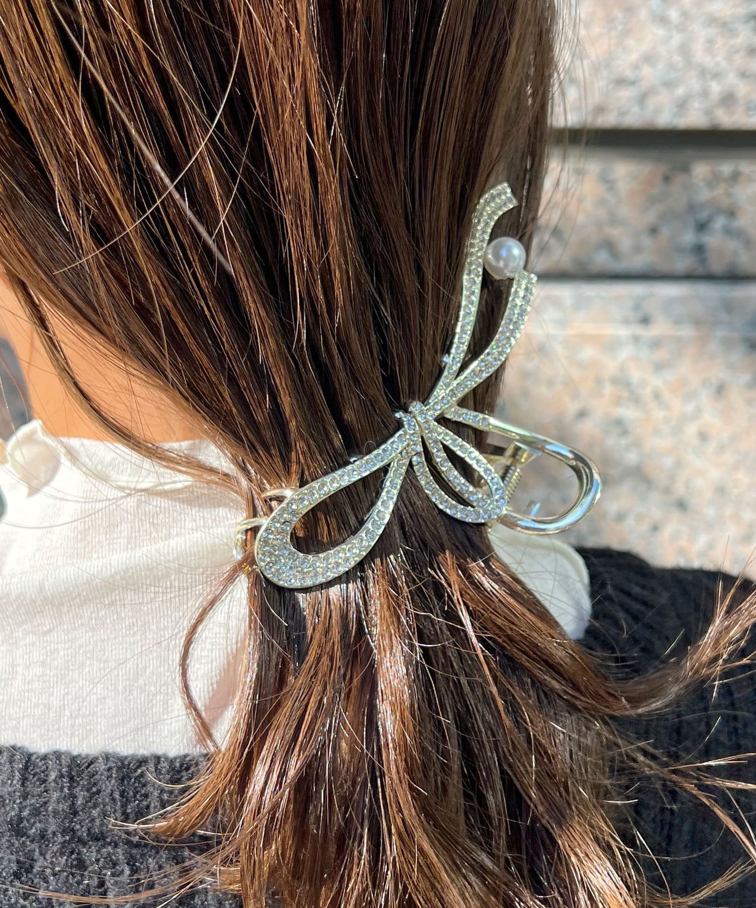 流線水鑽珍珠點綴鯊魚夾