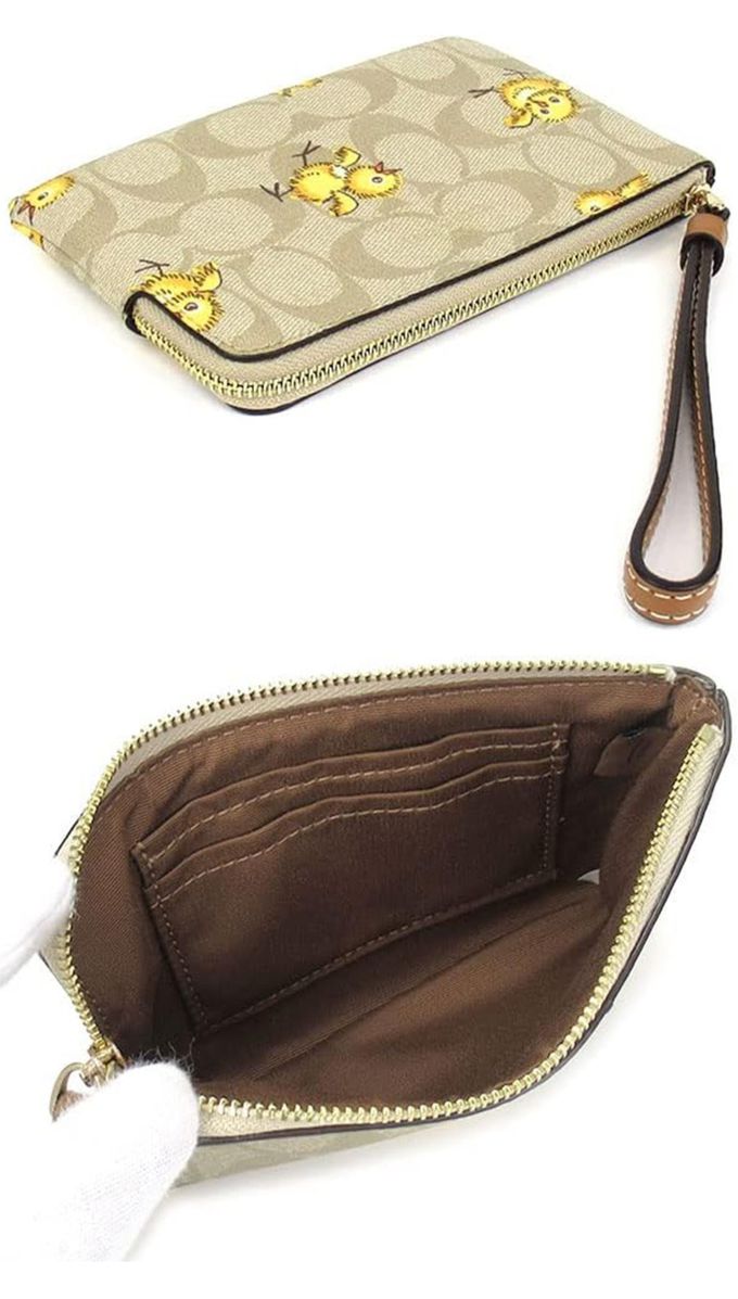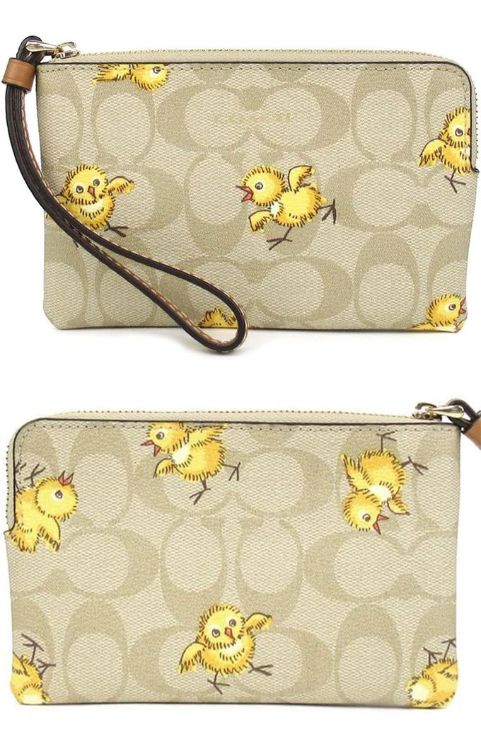 印花皮革拉鍊零錢手拿包 (小雞)