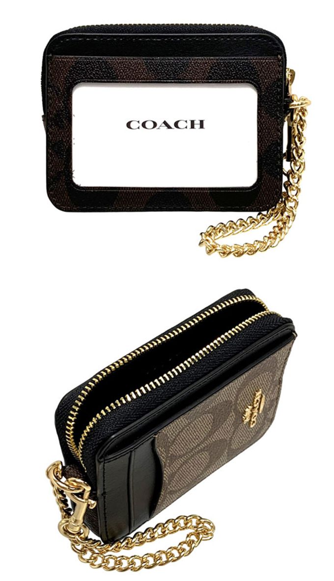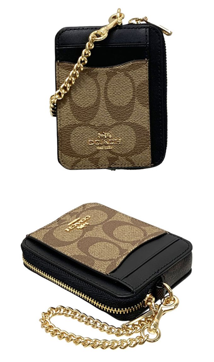 拼接皮革手掛式票卡零錢包 (卡其黑)