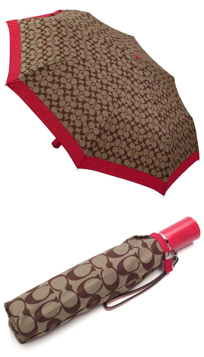 滿版LOGO自動晴雨傘 (卡其姻脂紅)