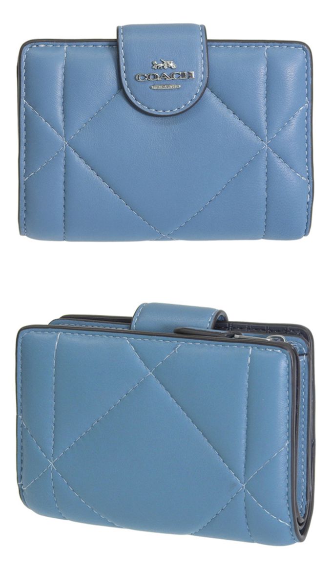 Coach - 絎縫納帕皮革中夾 (霧藍)