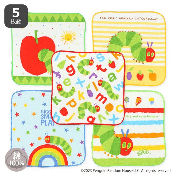 純棉上學擦手巾/手帕(5入組)-好餓的毛毛蟲