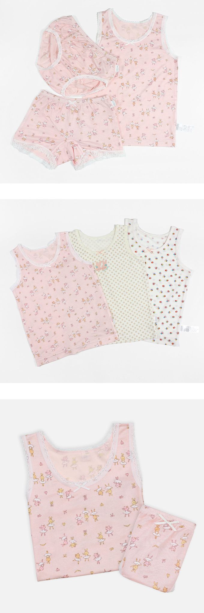 韓國 Ppippilong - 棉質透氣背心內衣(女寶)-花兒朵朵-粉