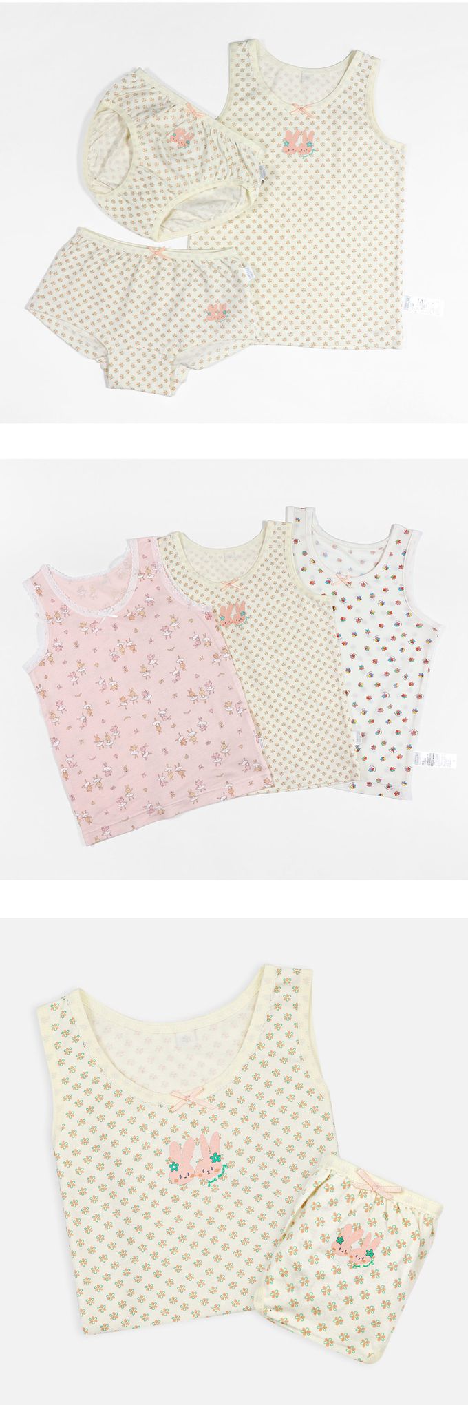 韓國 Ppippilong - 輕柔棉透氣短四角褲(女寶)-粉兔小花-米黃