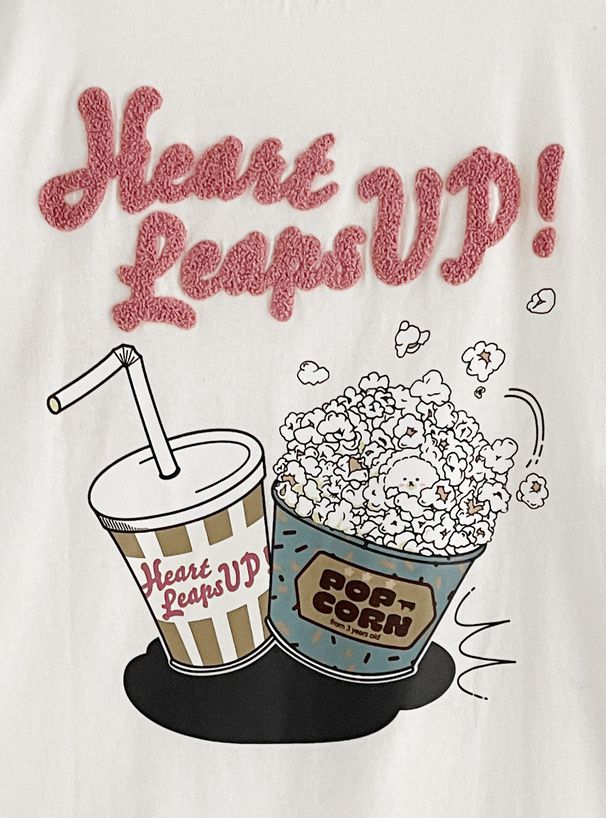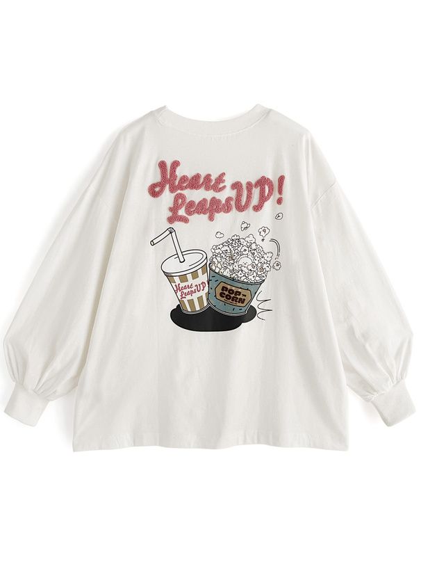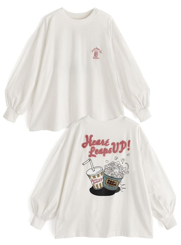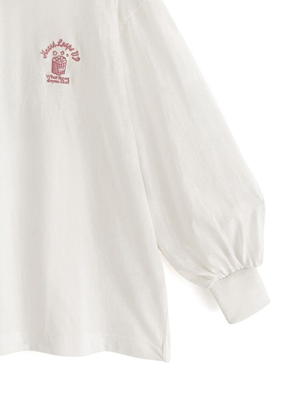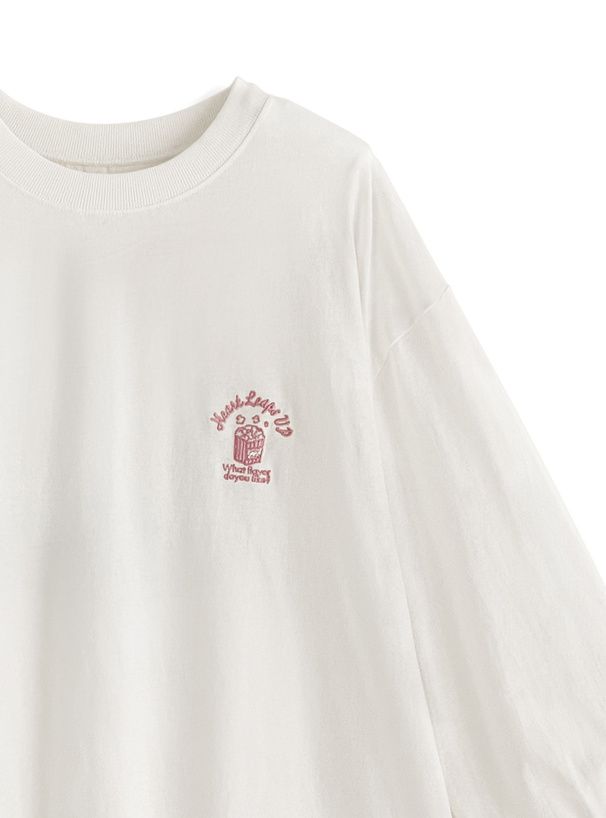 日本 GRL - 爆米花印花立體刺繡長版T恤-白 (F)