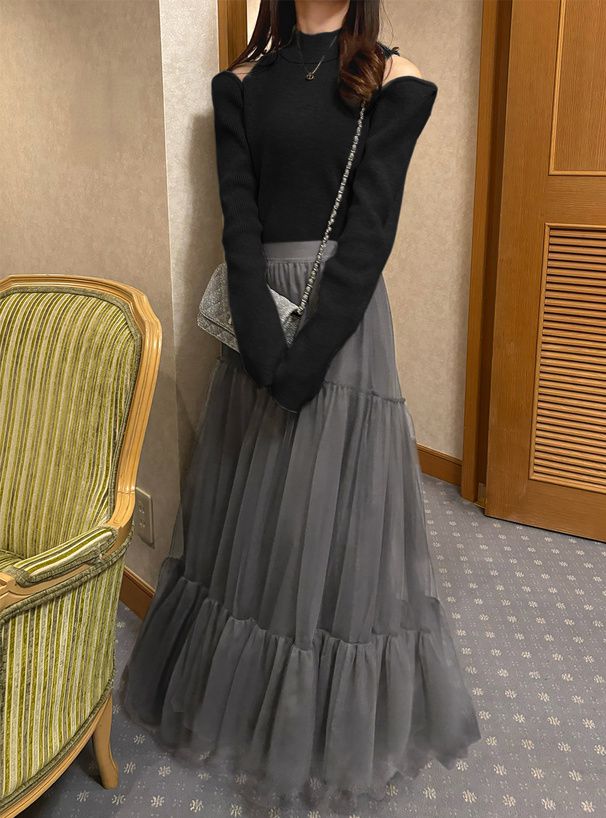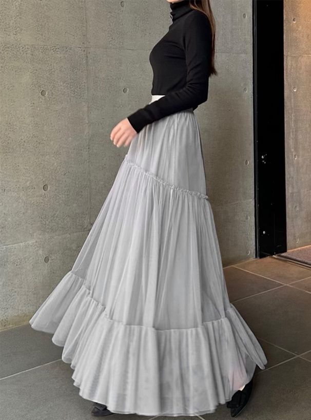 垂墜感薄紗疊層紗裙