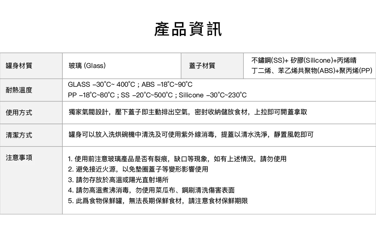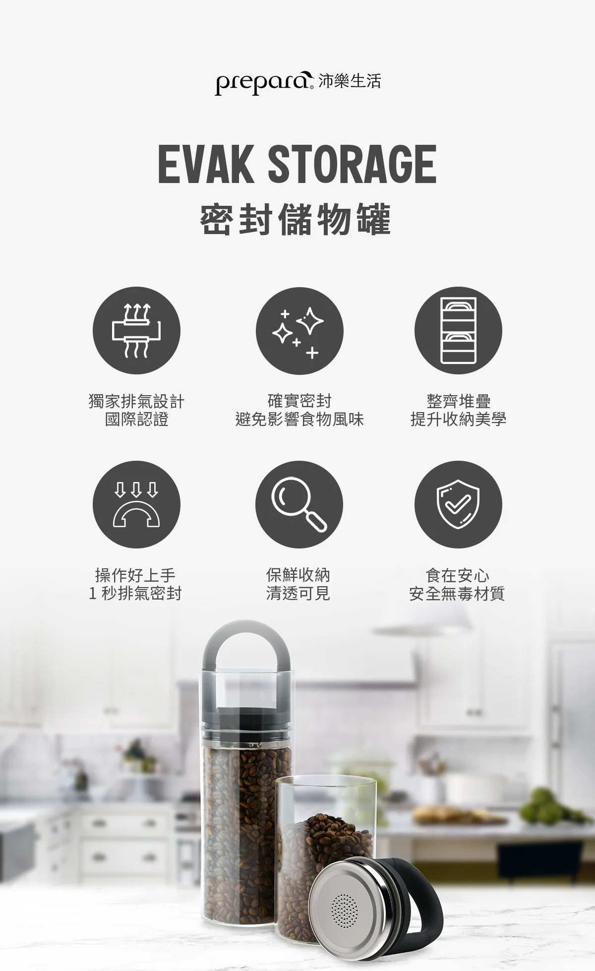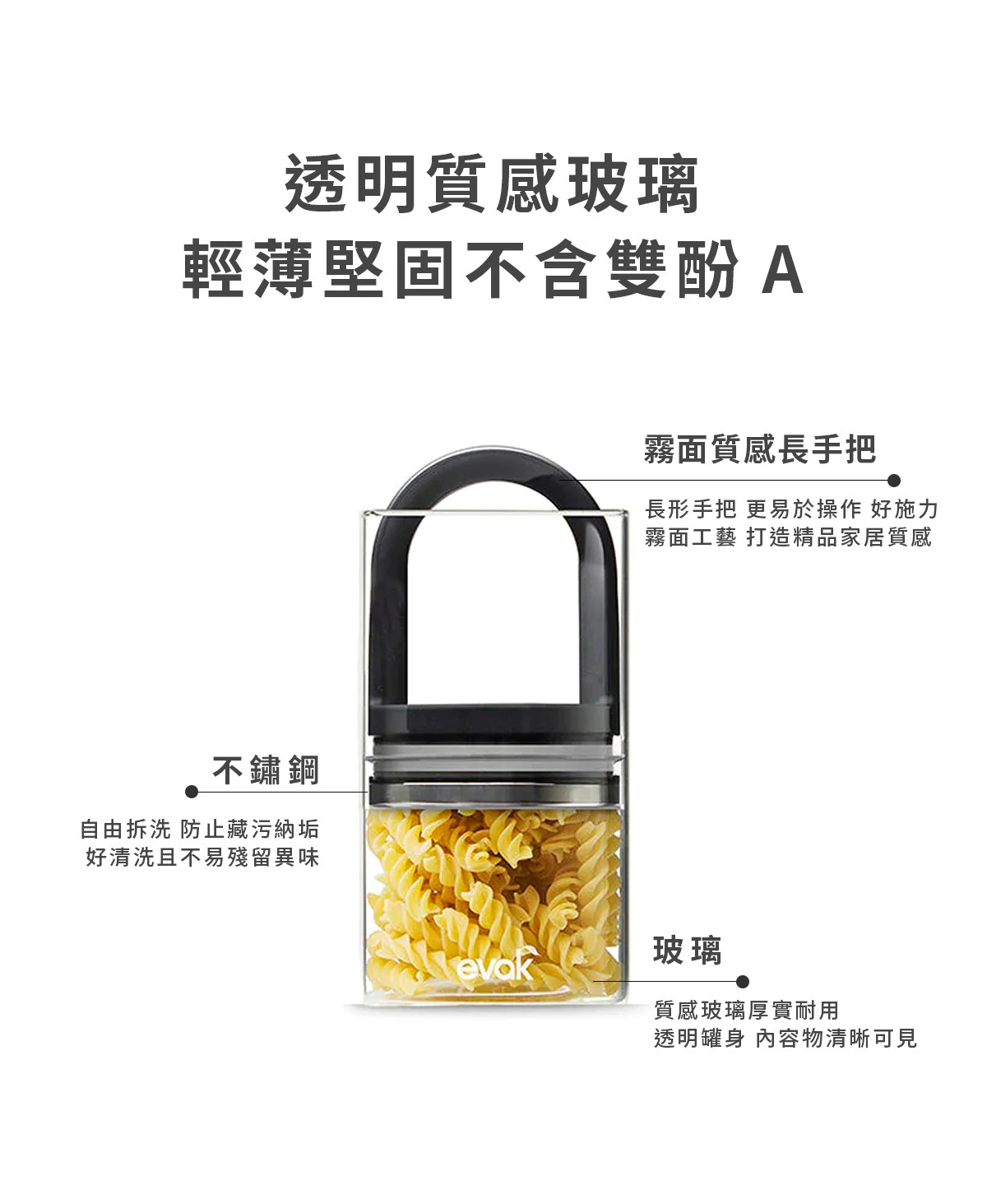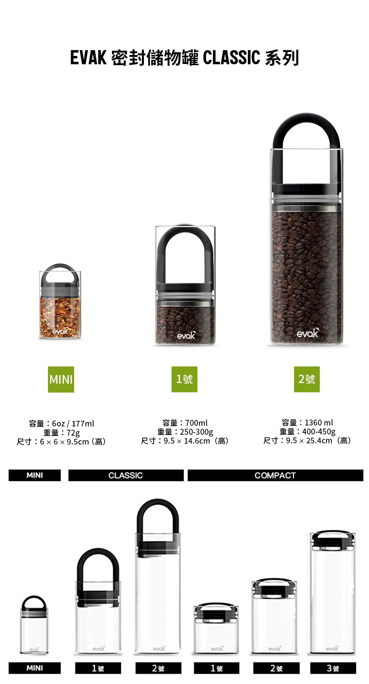 品名:EVAK 密封儲物罐 COMPACT 系列-玻璃/亮面把手 (1號)