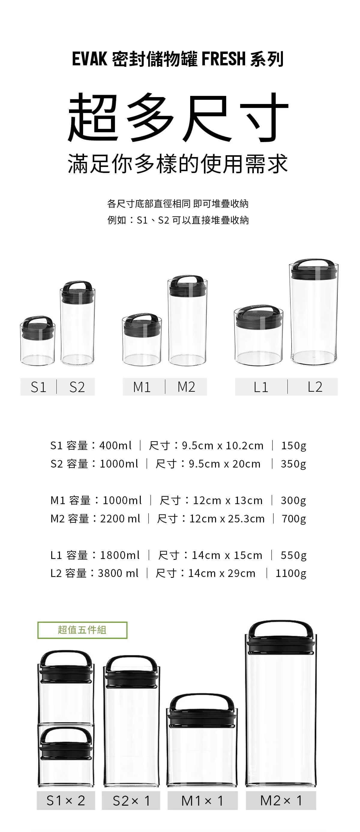 品名:EVAK 密封儲物罐 Fresh 系列-塑膠 (S1號)