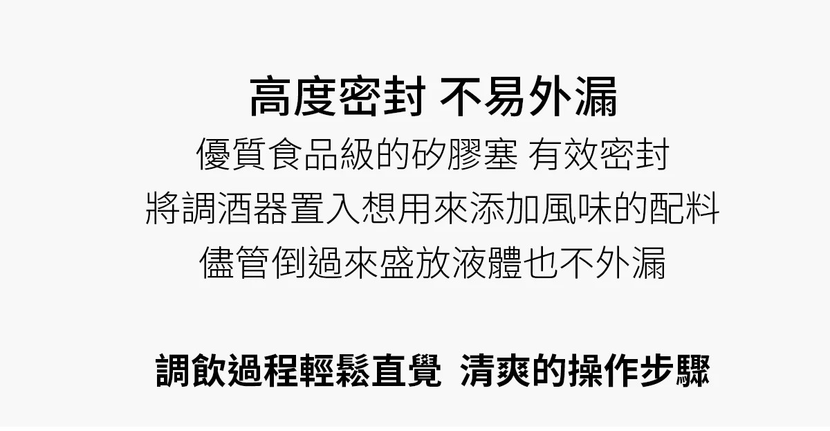 材質:Tritan +苯乙烯-丙烯情塑膠(SAN)+丙烯情-丁二烯-苯乙烯共聚物(ABS)+矽膠(Silicone)+304不鏽鋼(Stainless Steel)