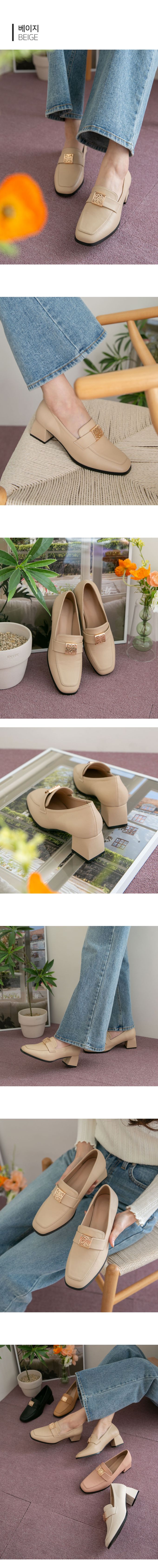 • 品名:品牌金屬飾穆勒粗跟鞋(5cm)