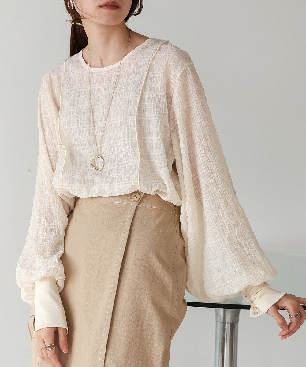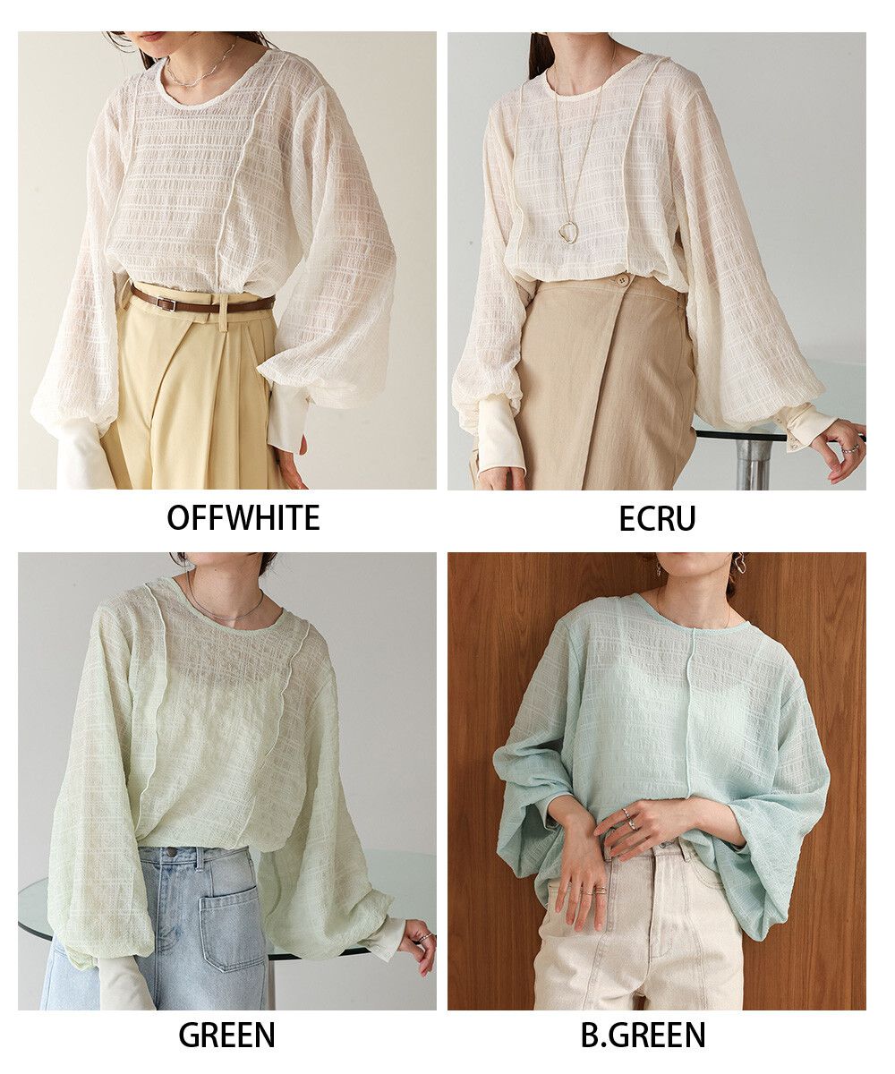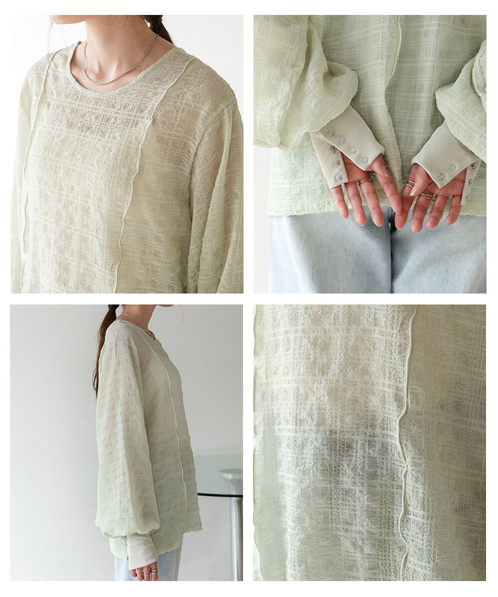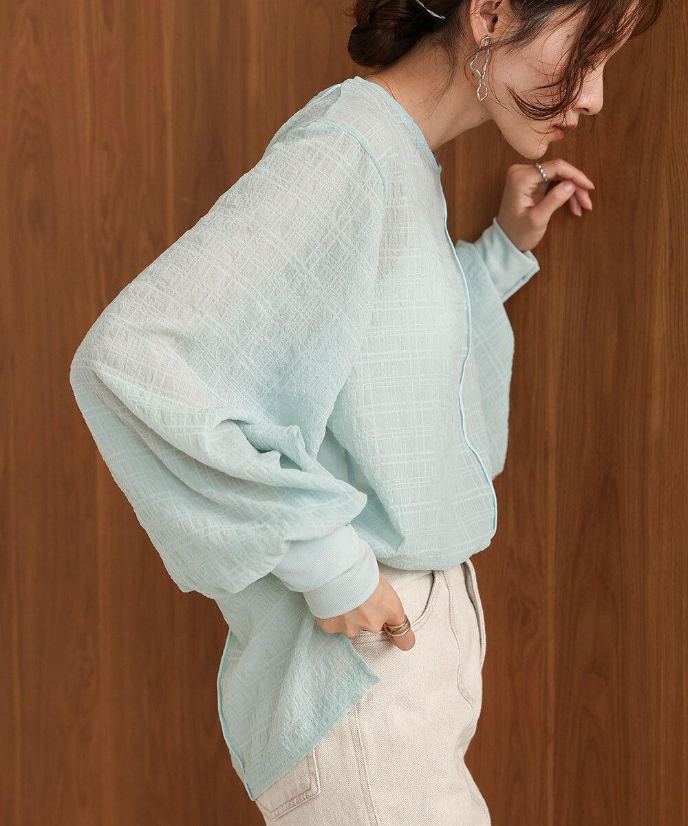 透膚紋理前後2way宮廷袖上衣