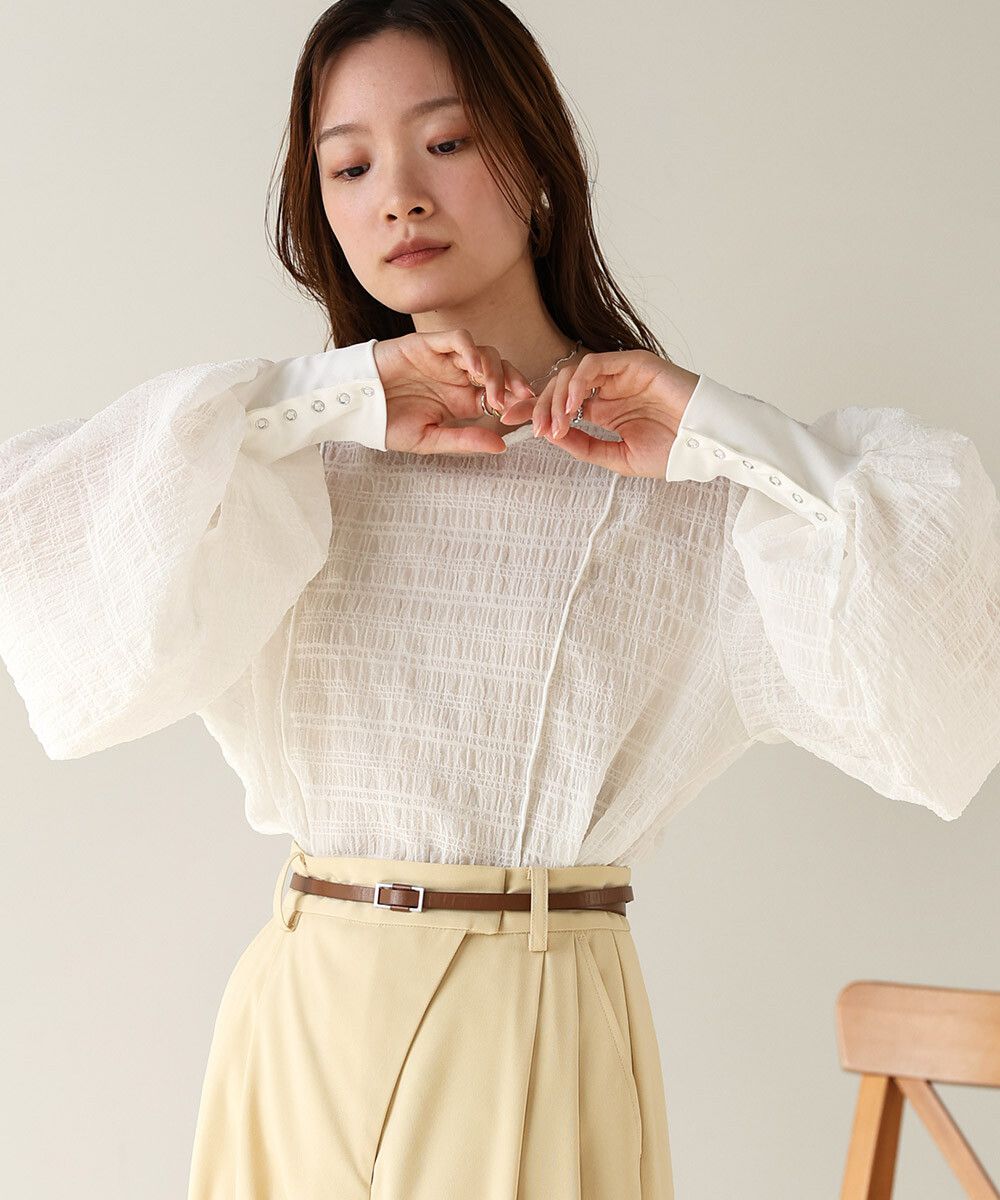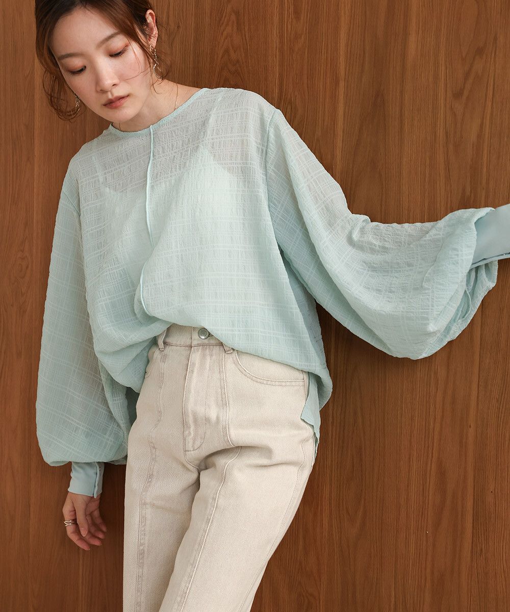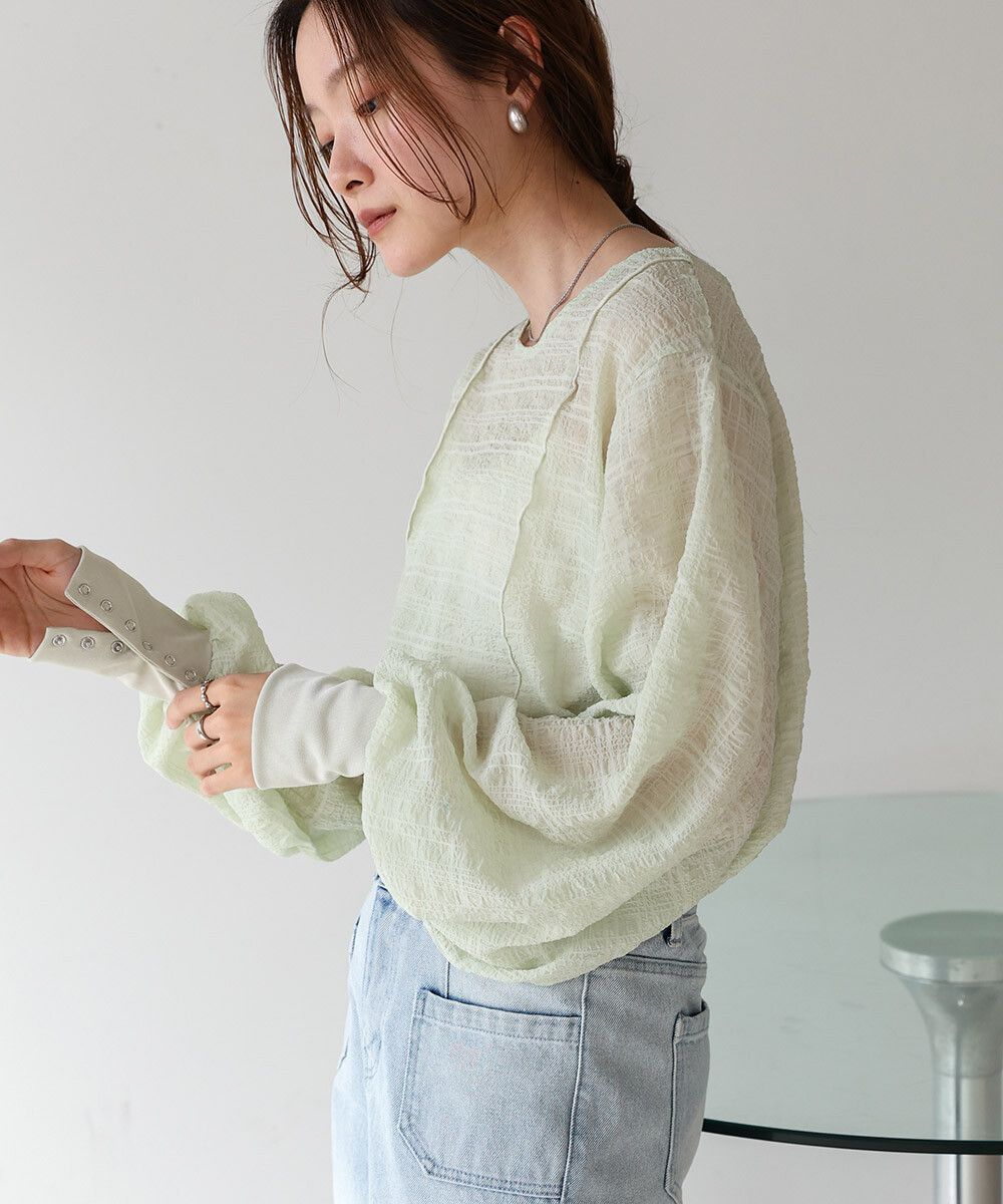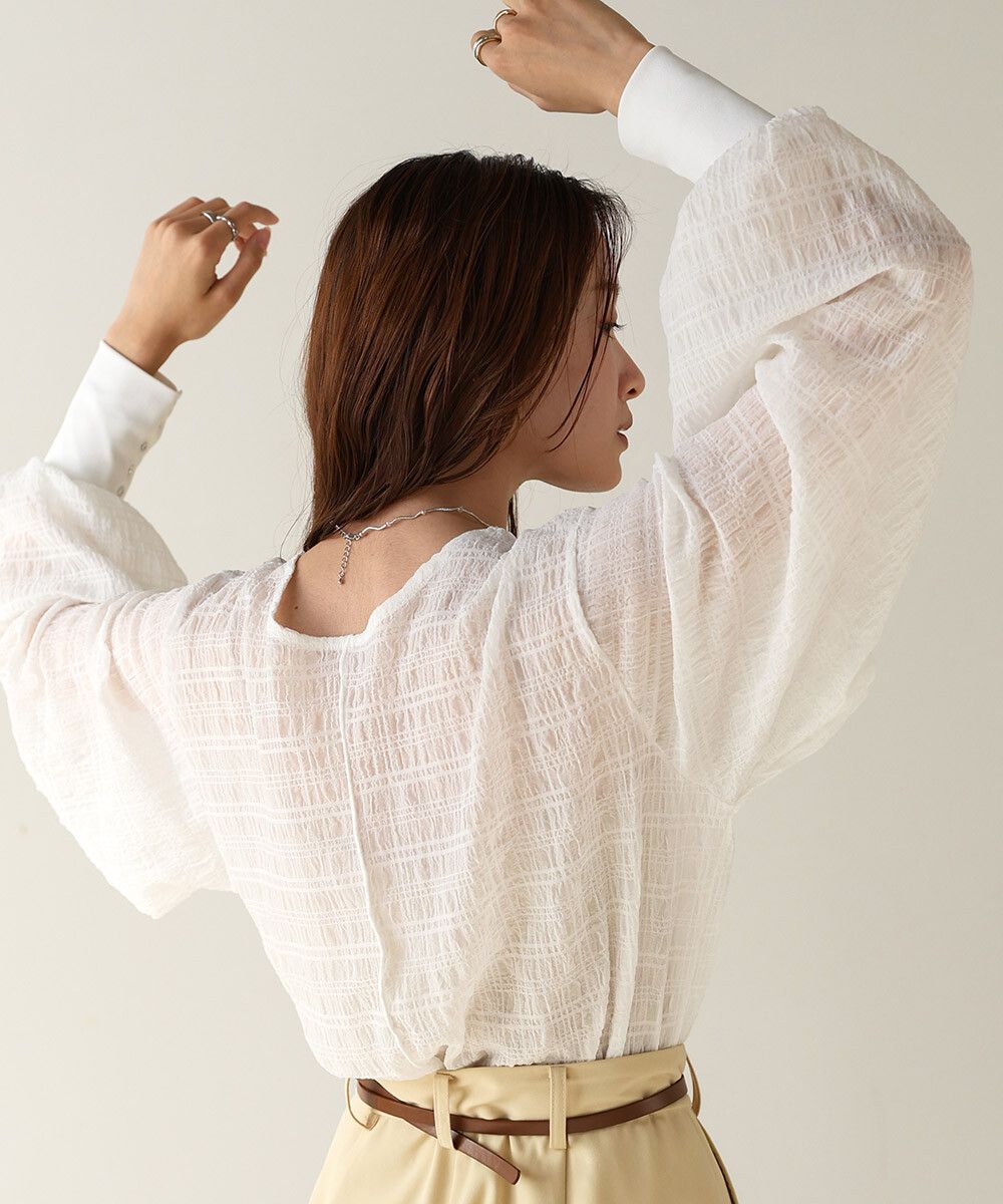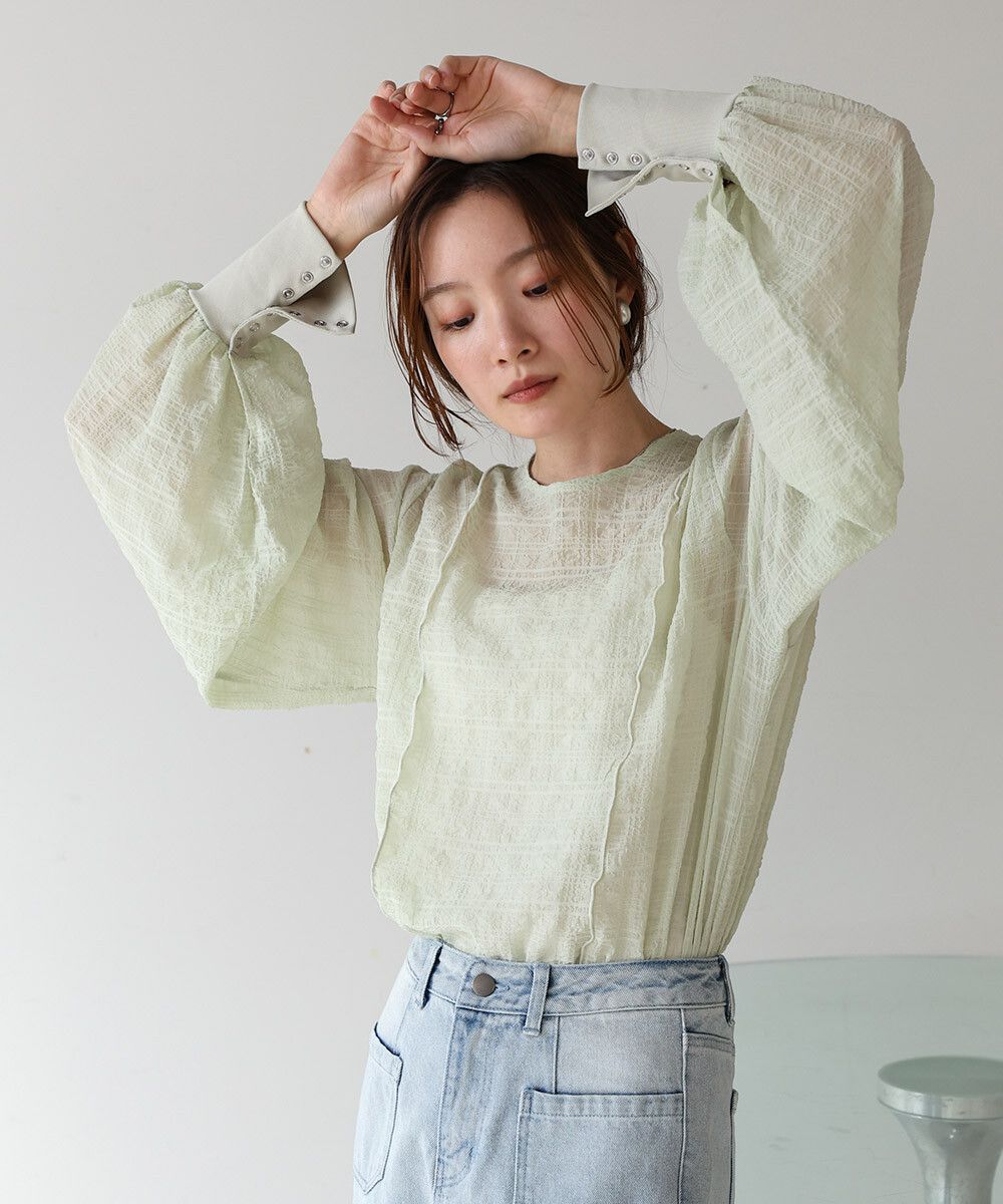 透膚紋理前後2way宮廷袖上衣