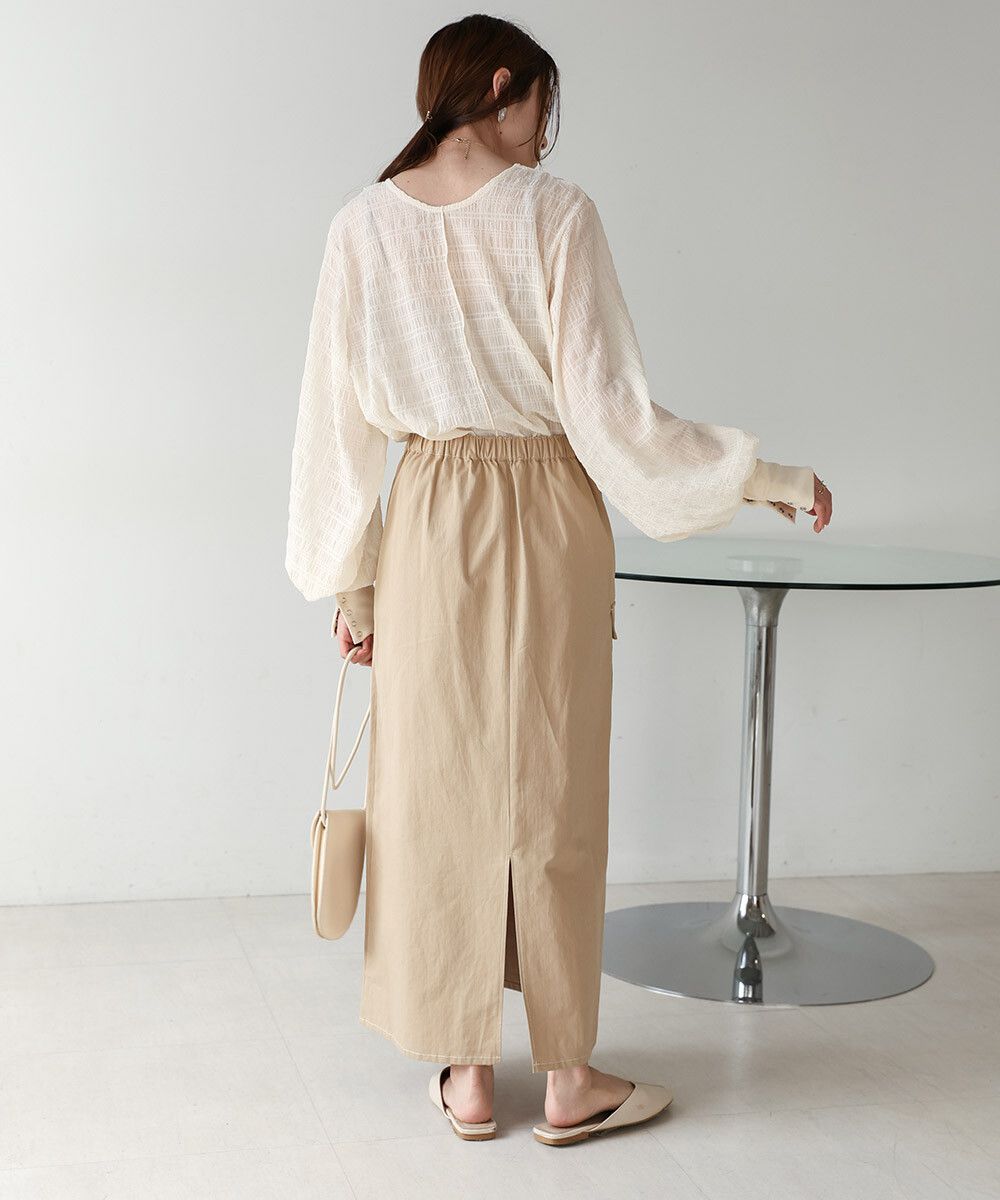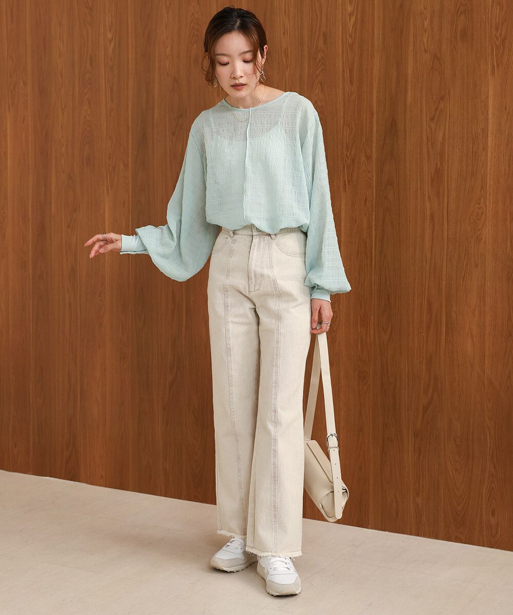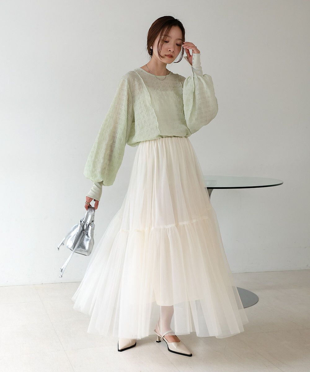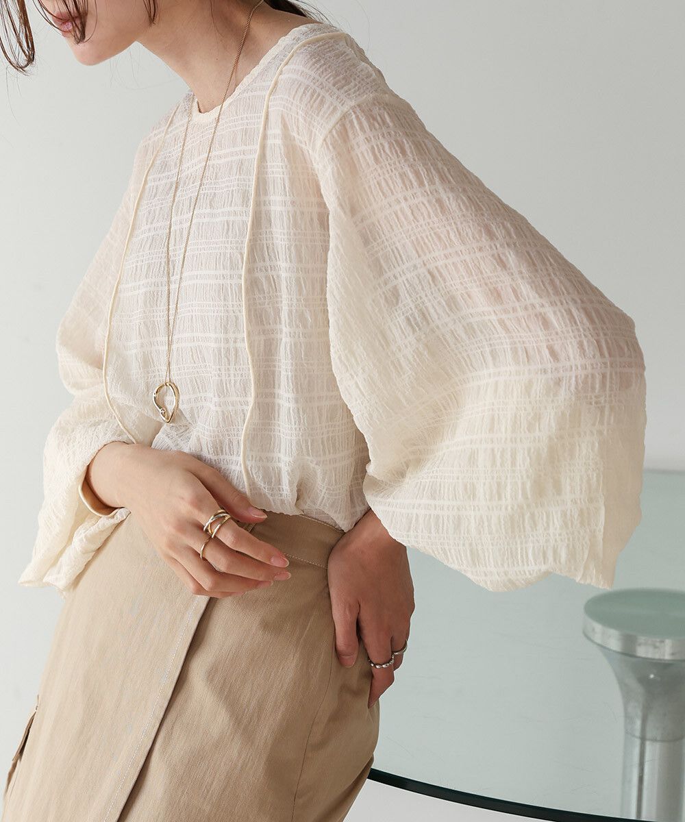 透膚紋理前後2way宮廷袖上衣