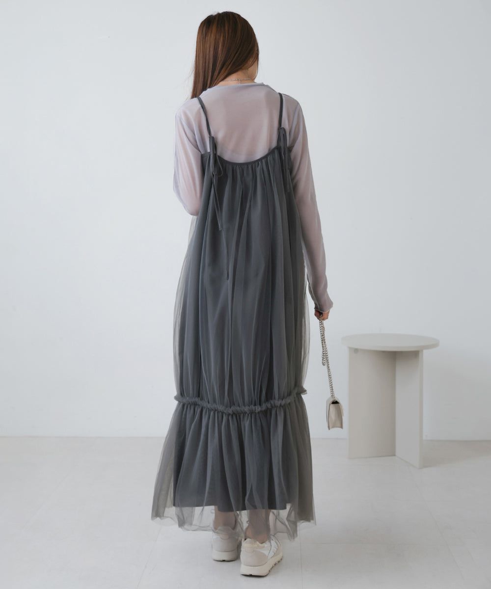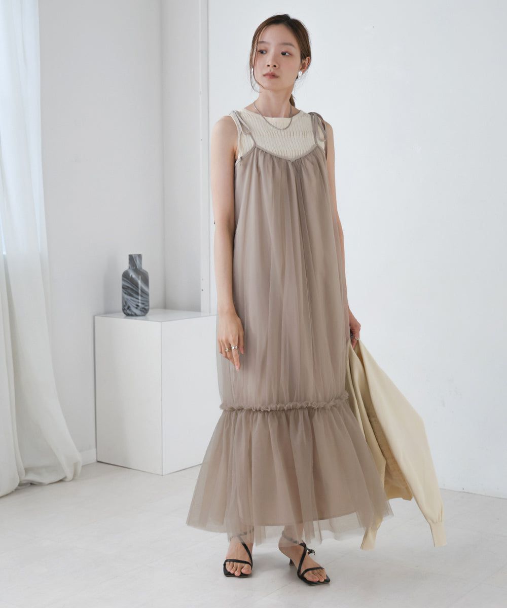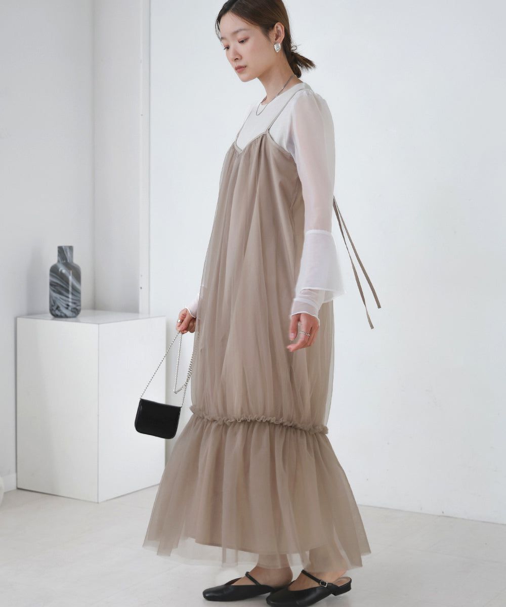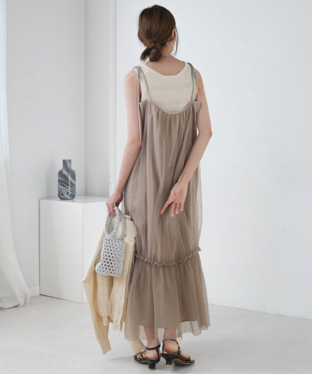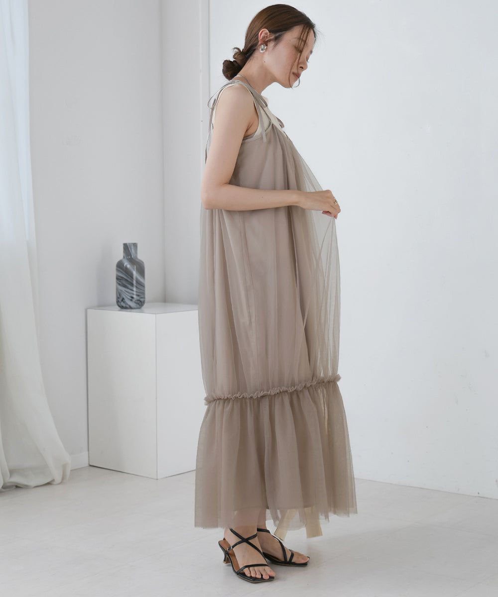 夢幻歐根紗拼接吊帶裙