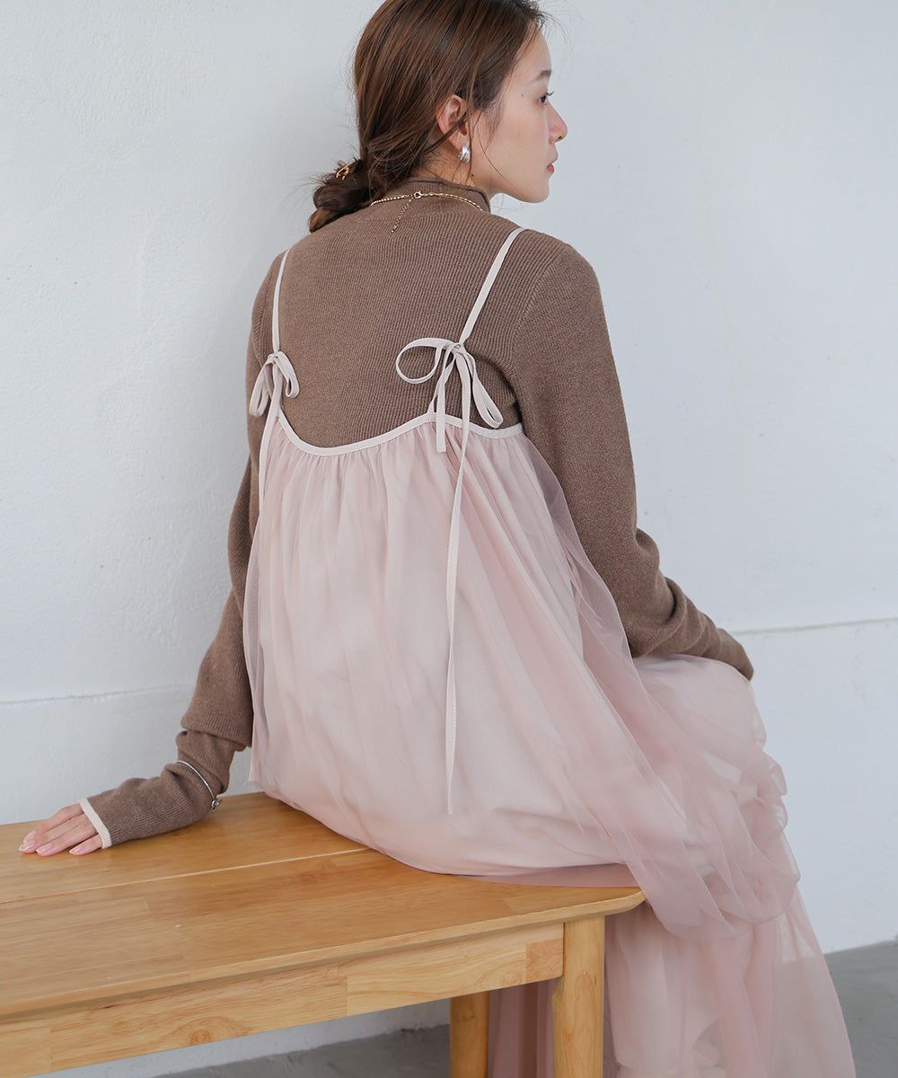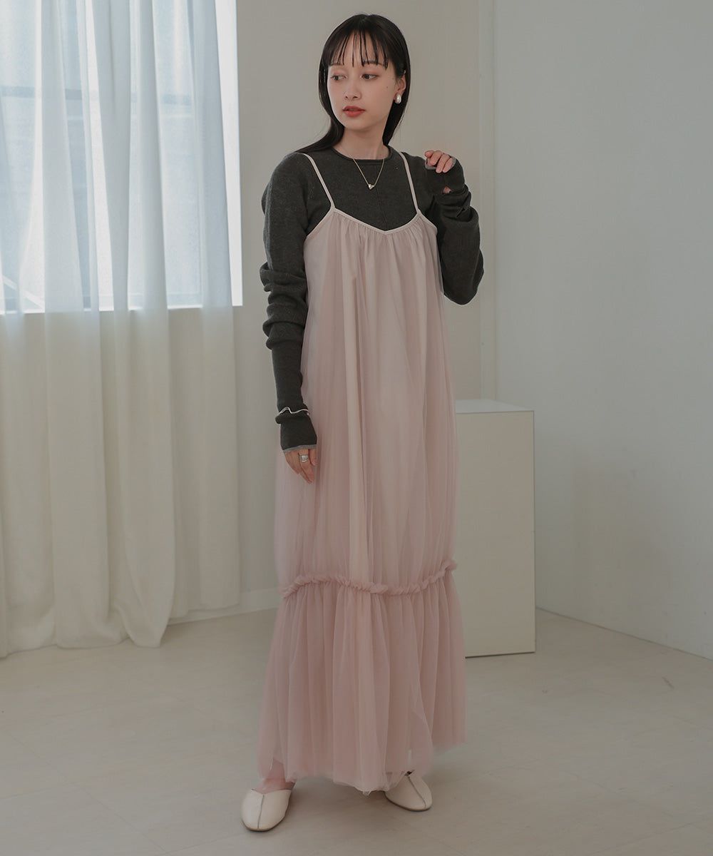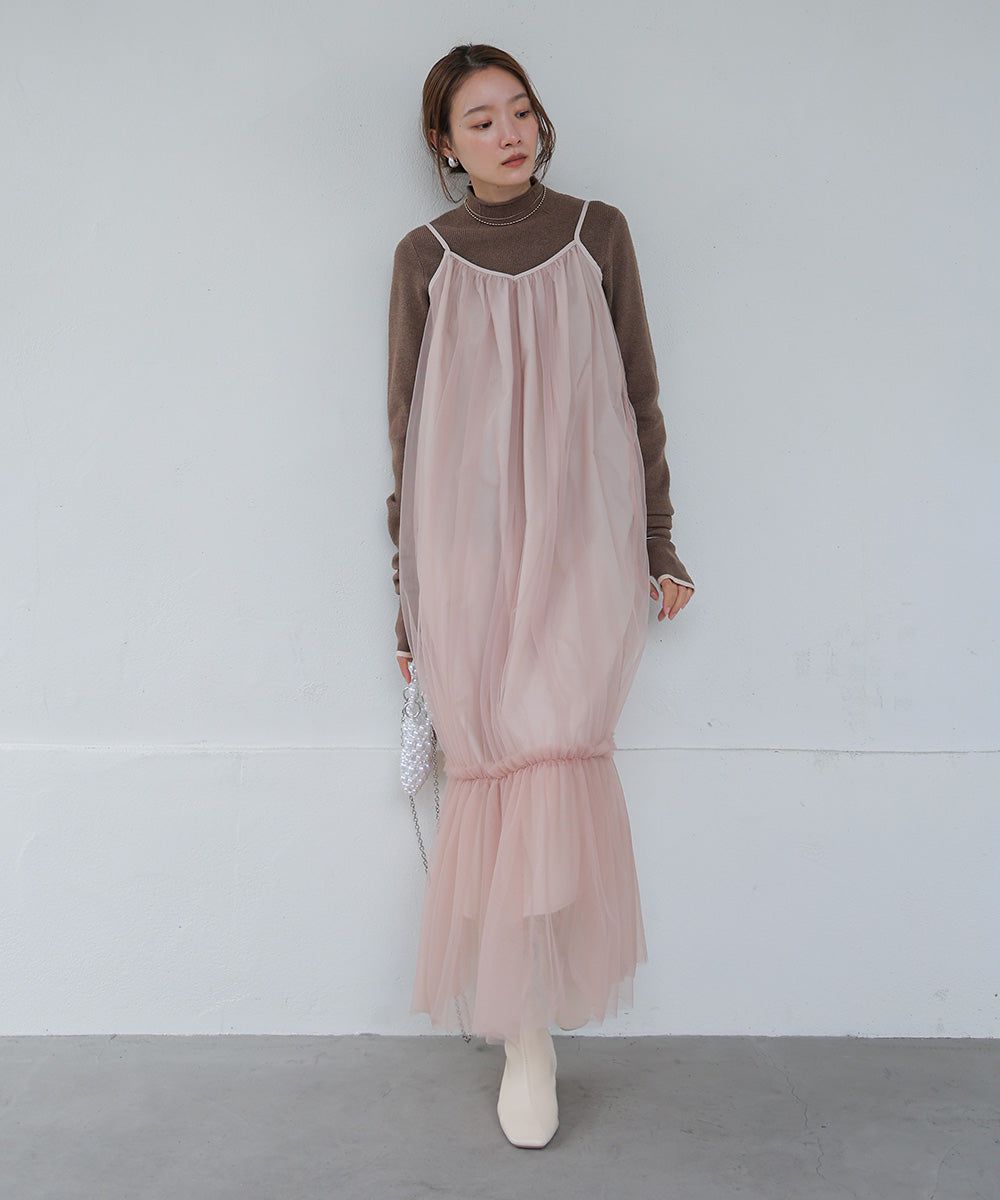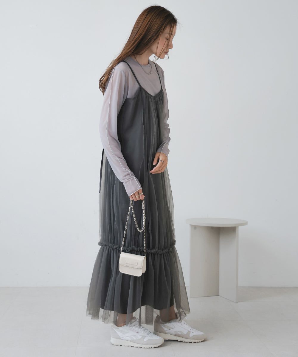 夢幻歐根紗拼接吊帶裙