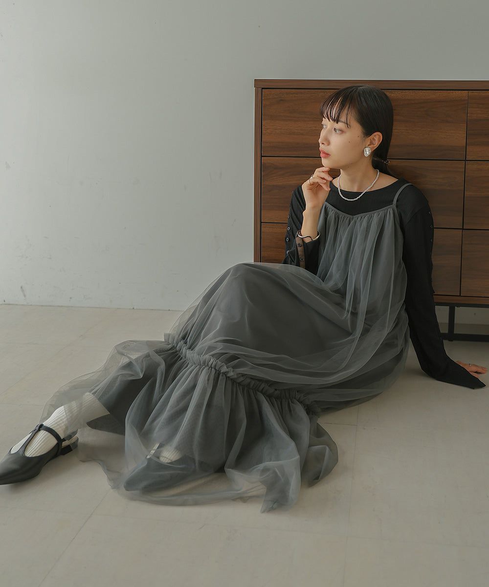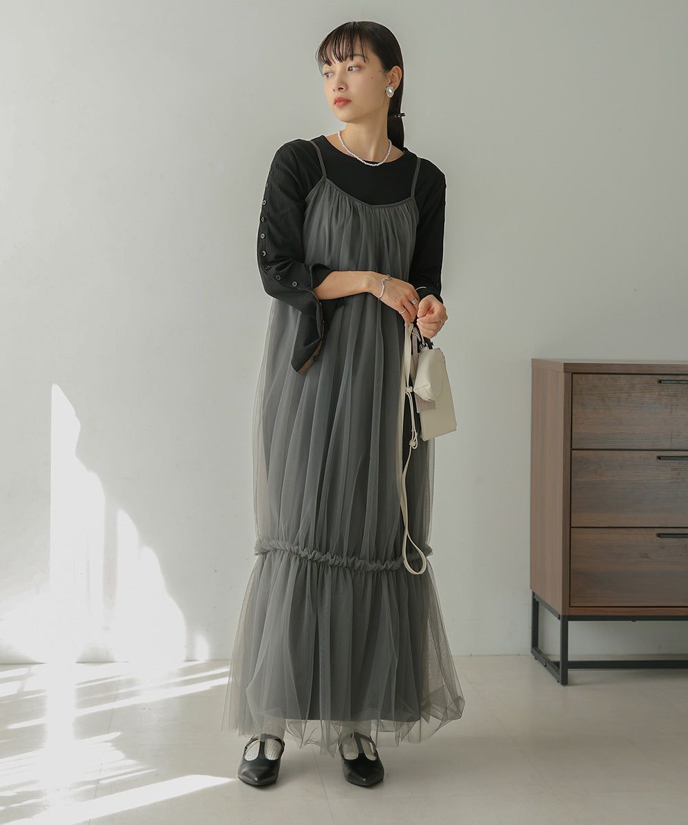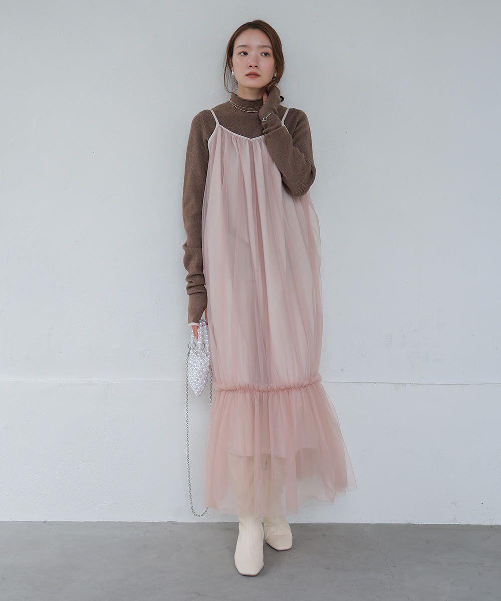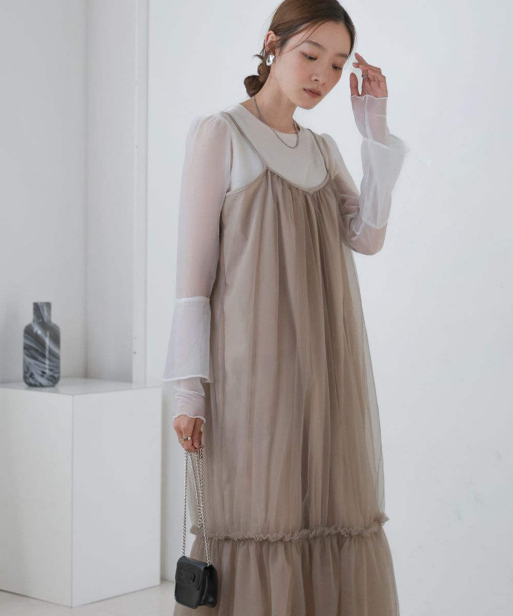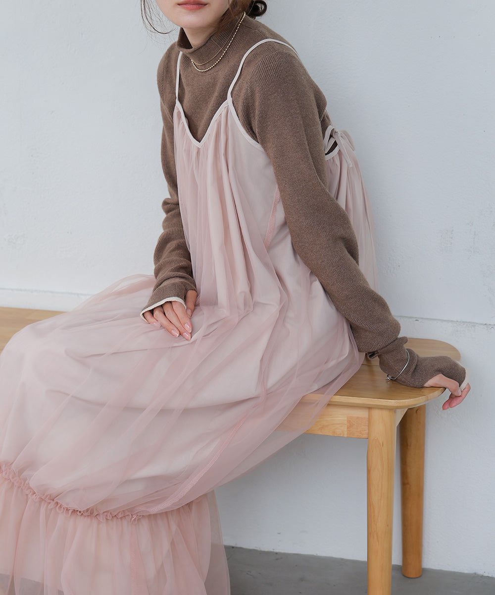 夢幻歐根紗拼接吊帶裙