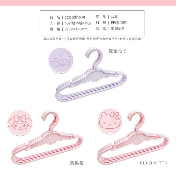 品名:三麗鷗Sanrio 【美樂蒂】兒童塑膠衣架 兒童衣架 無痕衣架-25支