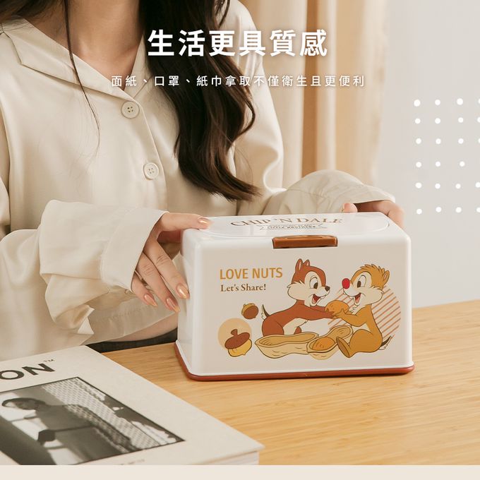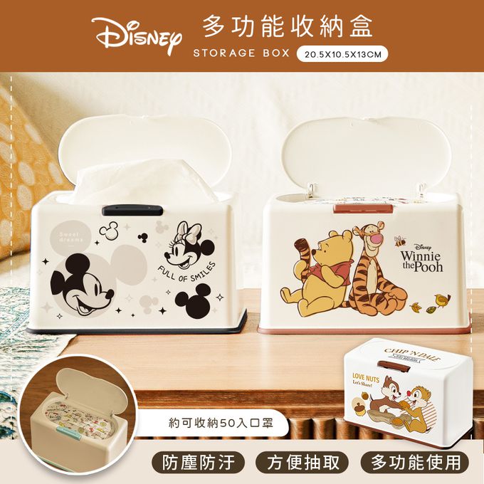 收納王妃 - 迪士尼 Disney【花生奇奇蒂蒂】50入口罩收納盒 衛生紙盒 濕紙巾盒 塑膠收納 內建彈簧自動向上