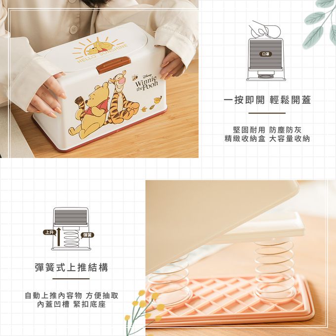 品名:迪士尼 Disney【維尼跳跳虎】50入口罩收納盒 衛生紙盒 濕紙巾盒 塑膠收納 內建彈簧自動向上