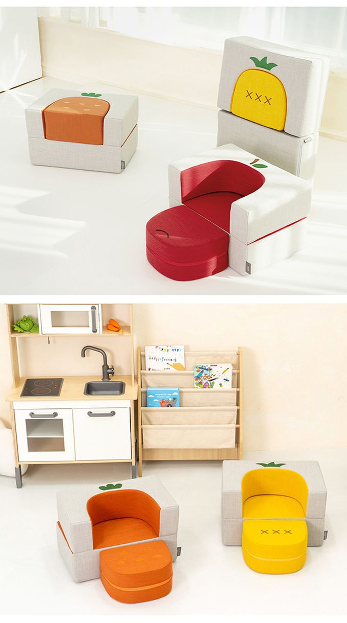 ▲ 可愛蔬菜造型兒童沙發,3秒變身多用途