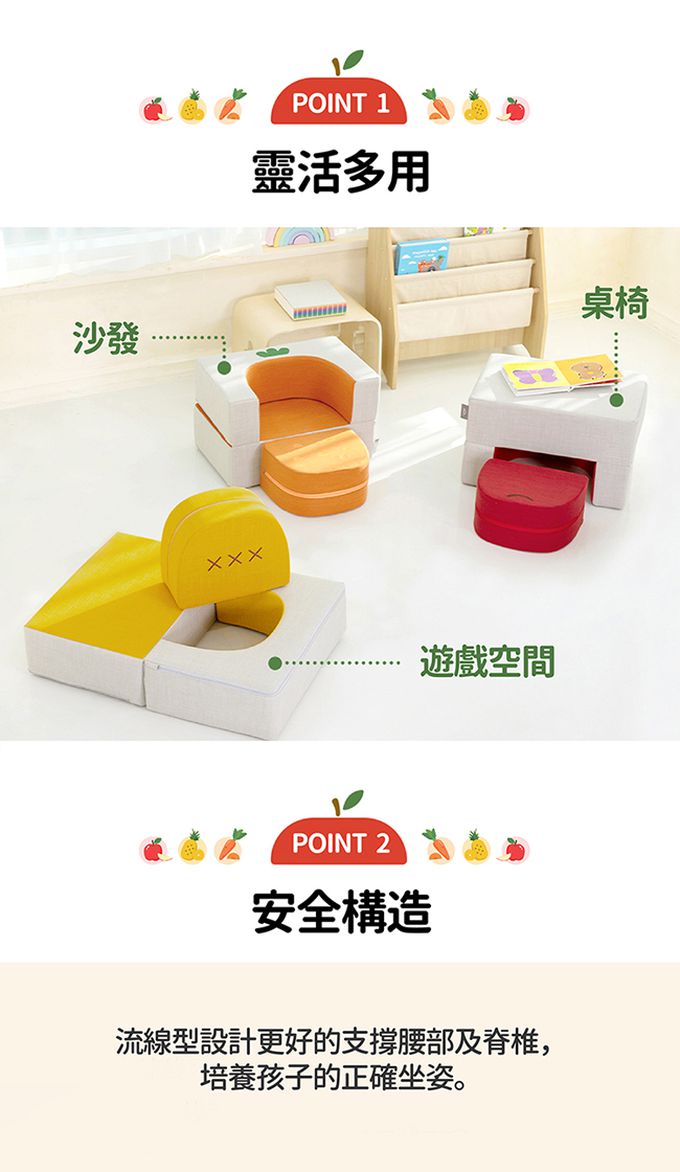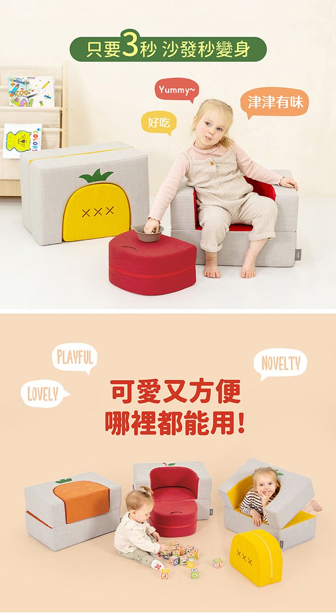 • ▲ 可愛蔬菜造型兒童沙發,3秒變身多用途