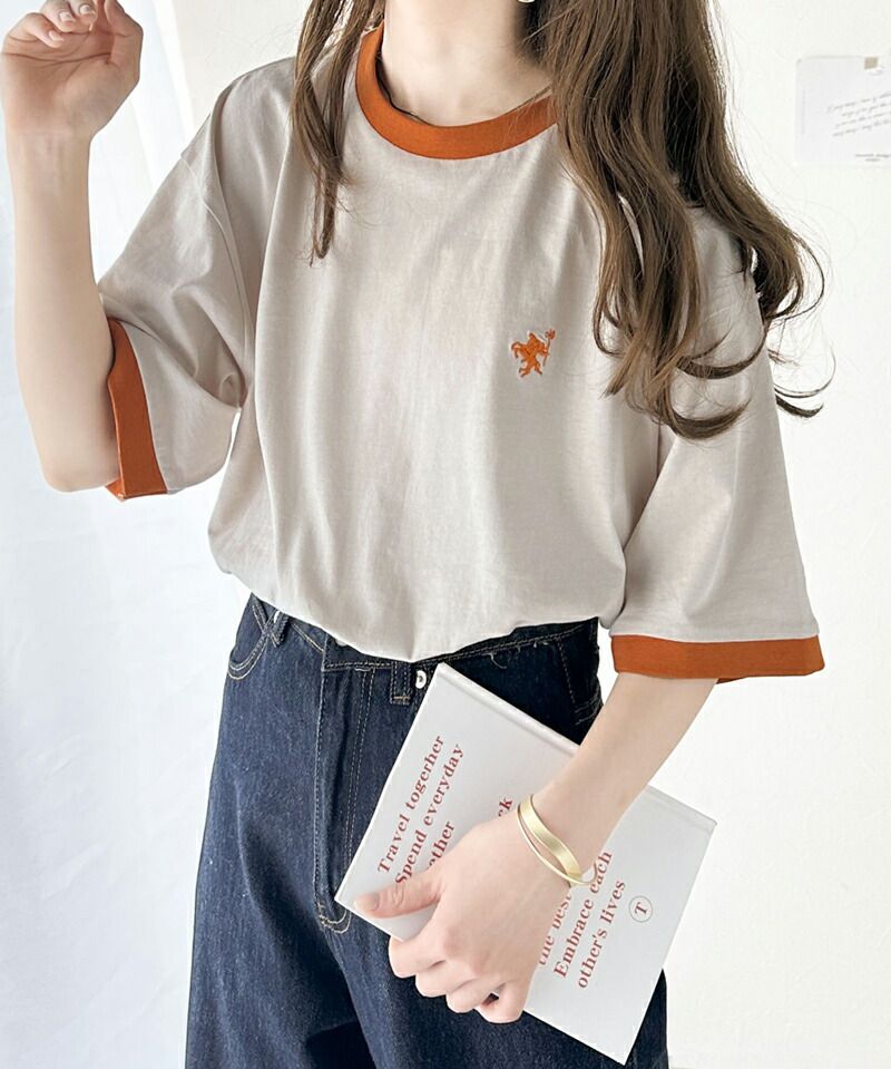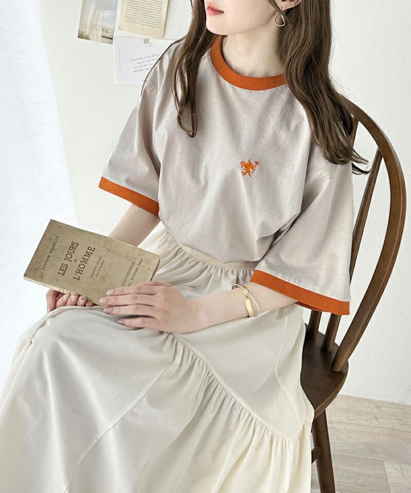 日本 Classical Elf - Java聯名 logo滾邊純棉短袖上衣-卡其x橘