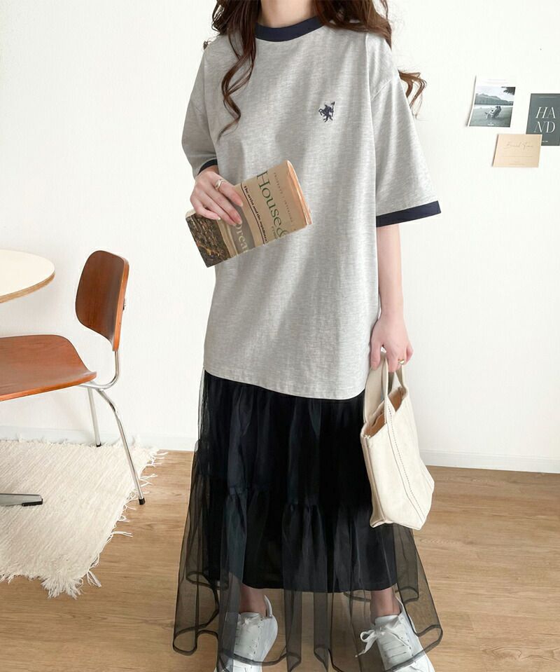 日本 Classical Elf - Java聯名 logo滾邊純棉短袖上衣-雜灰x黑