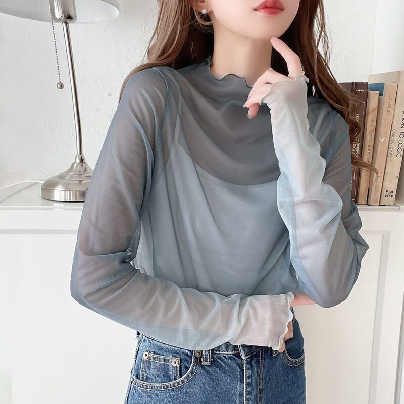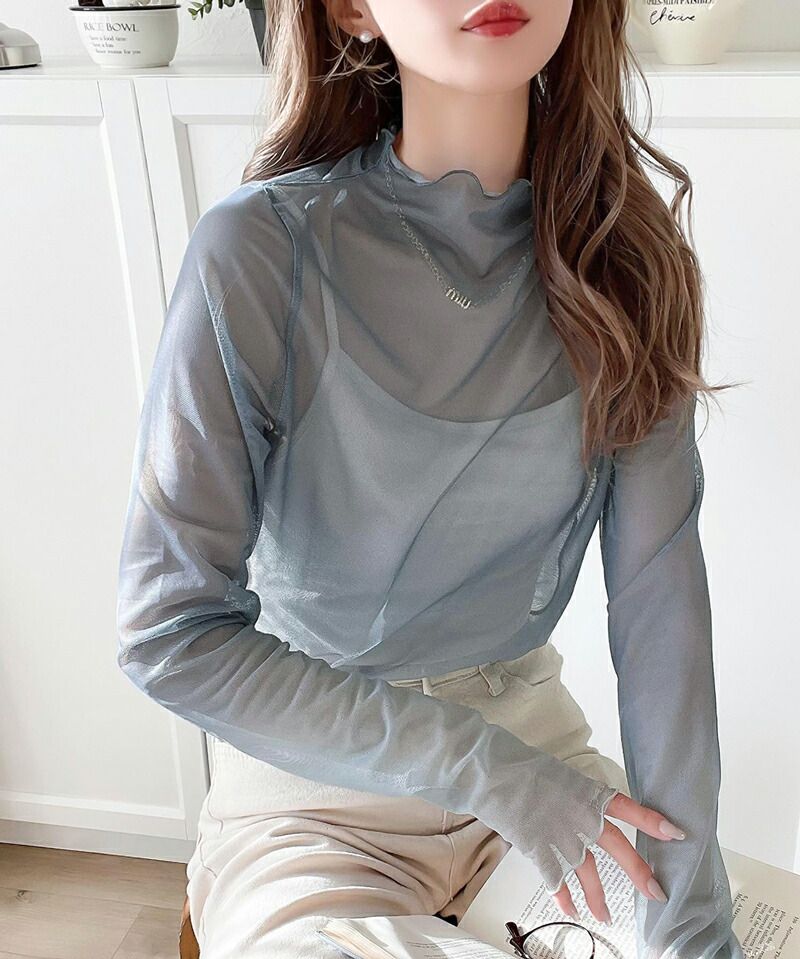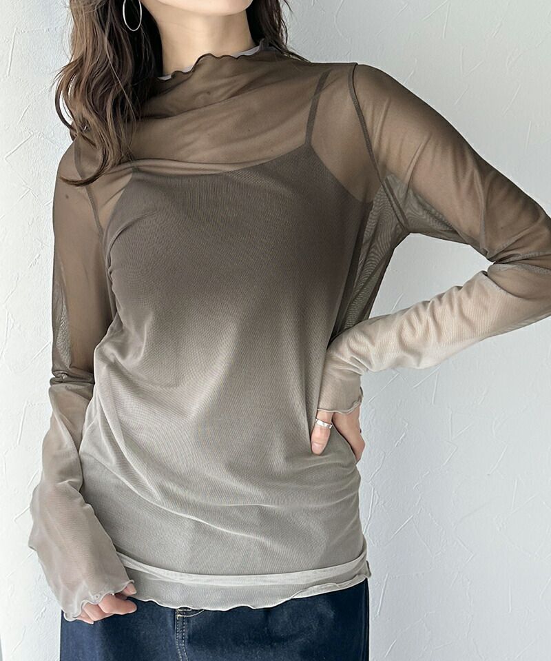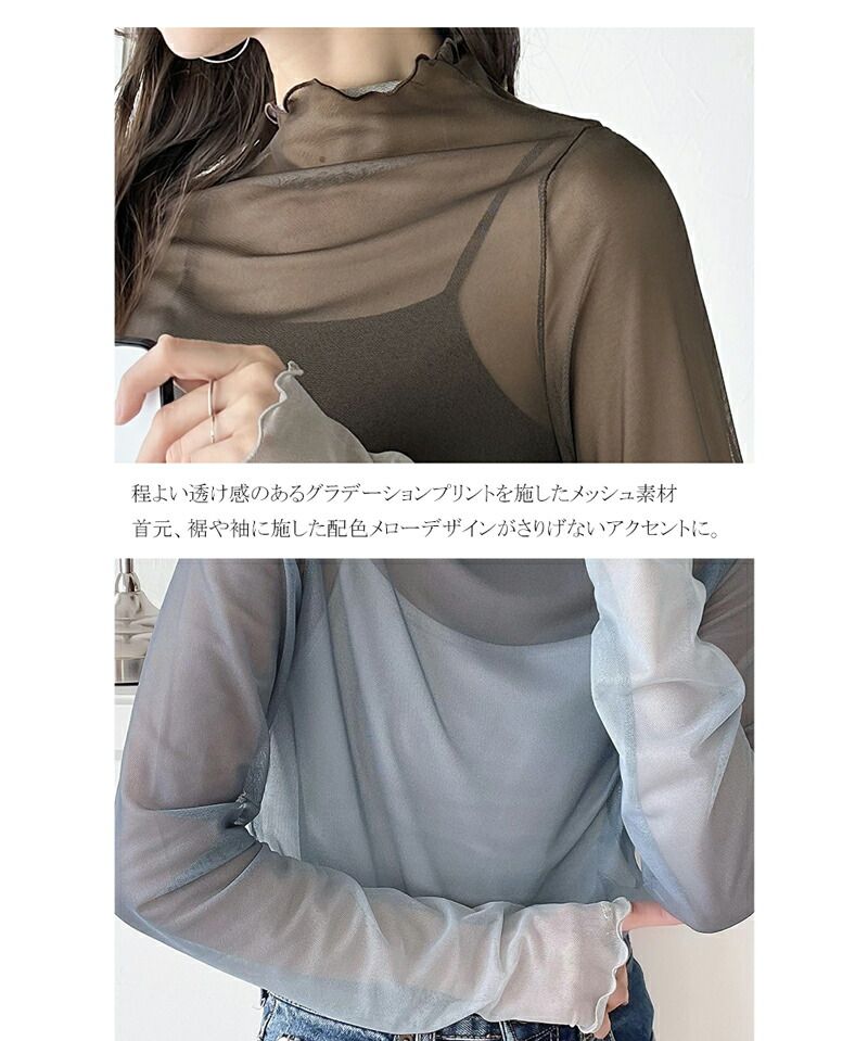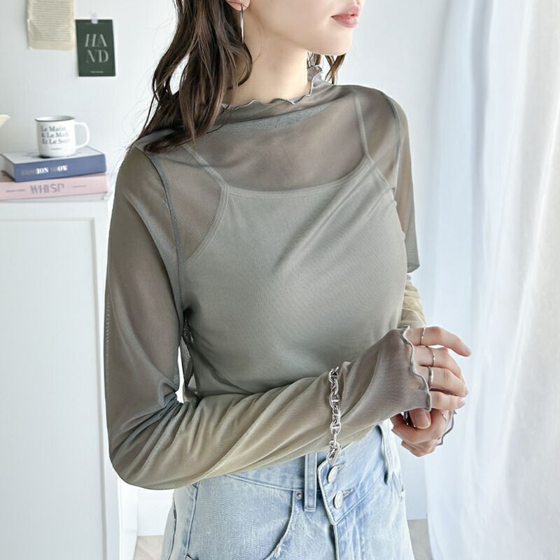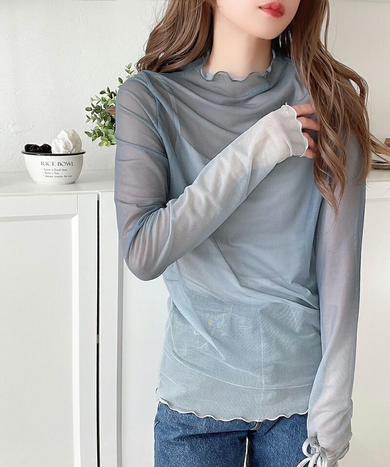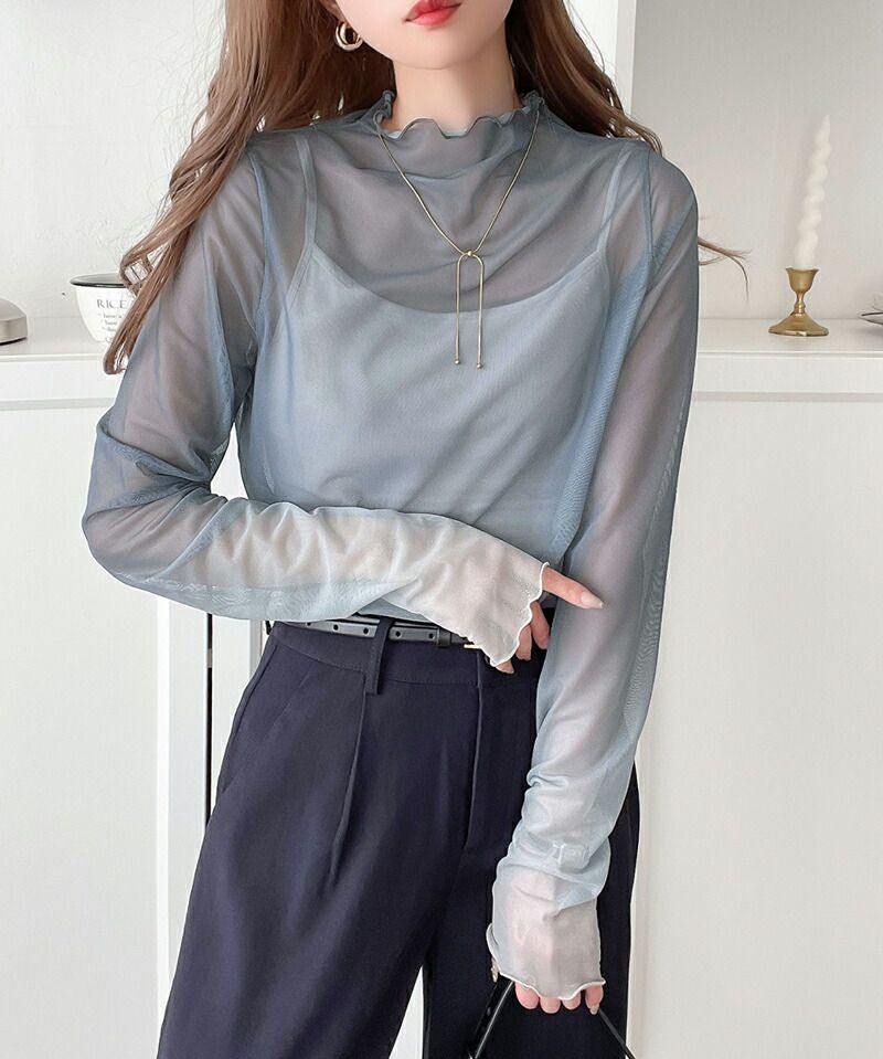 • 品名:成熟漸層木耳捲邊透膚上衣