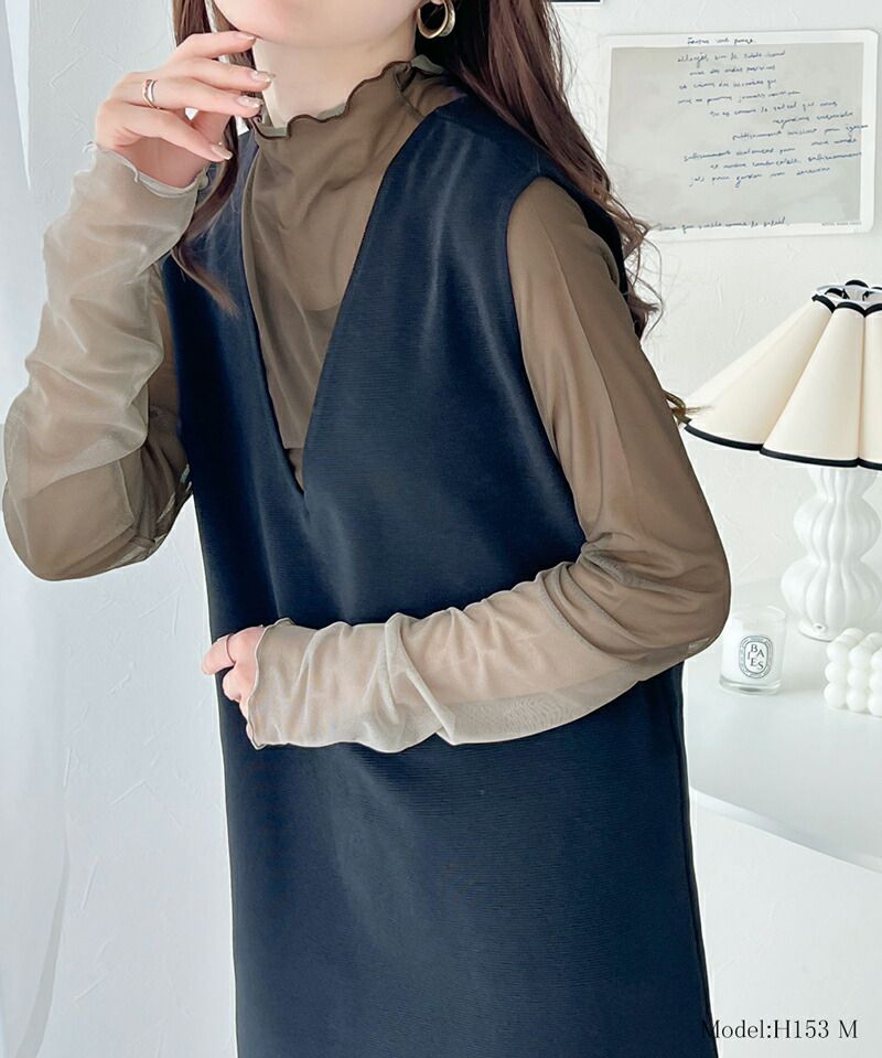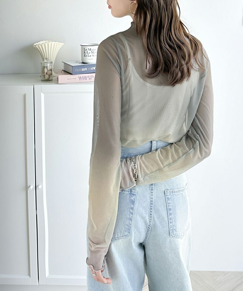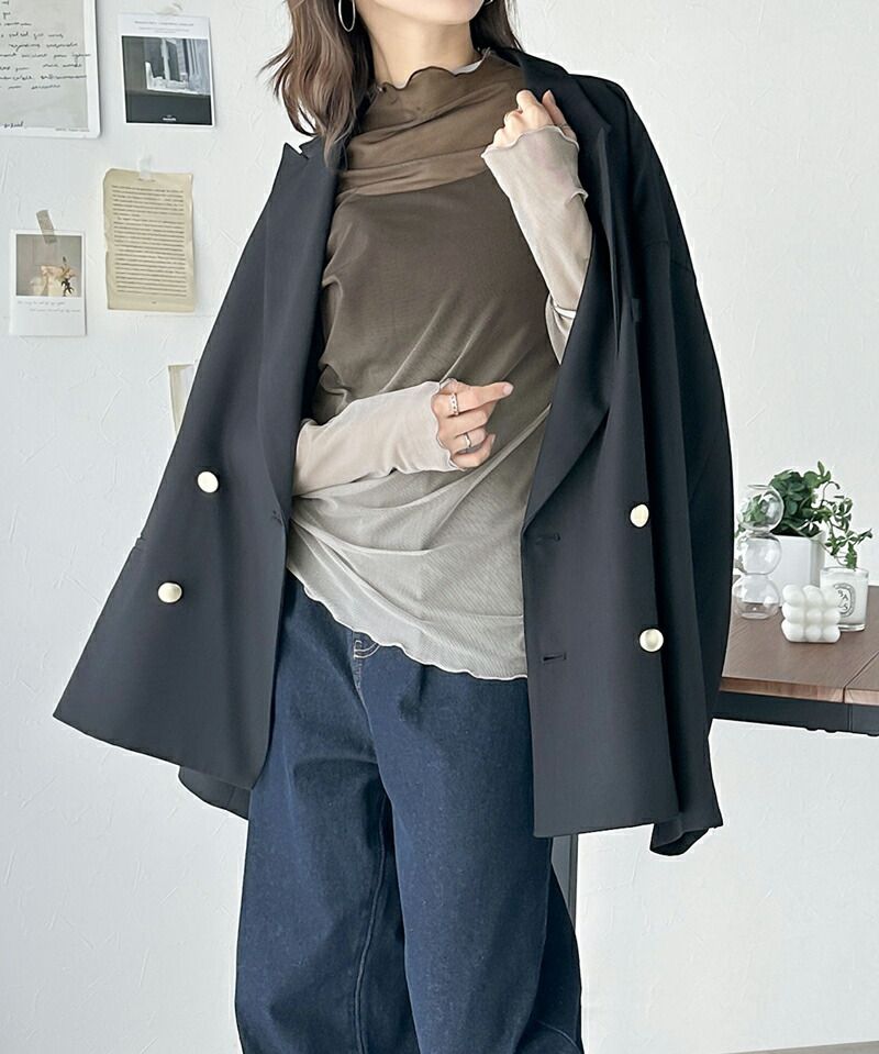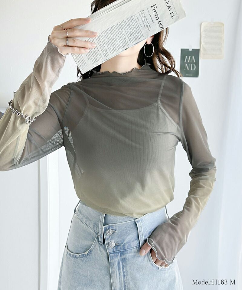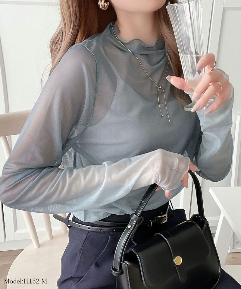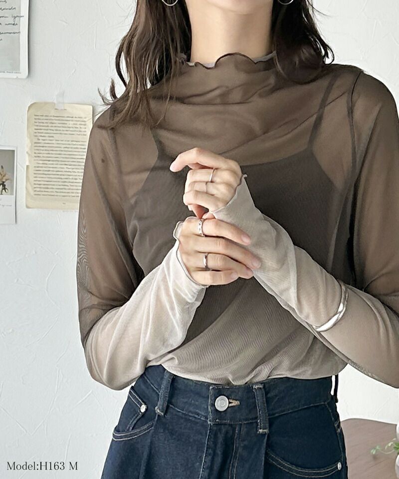 • 品名:成熟漸層木耳捲邊透膚上衣