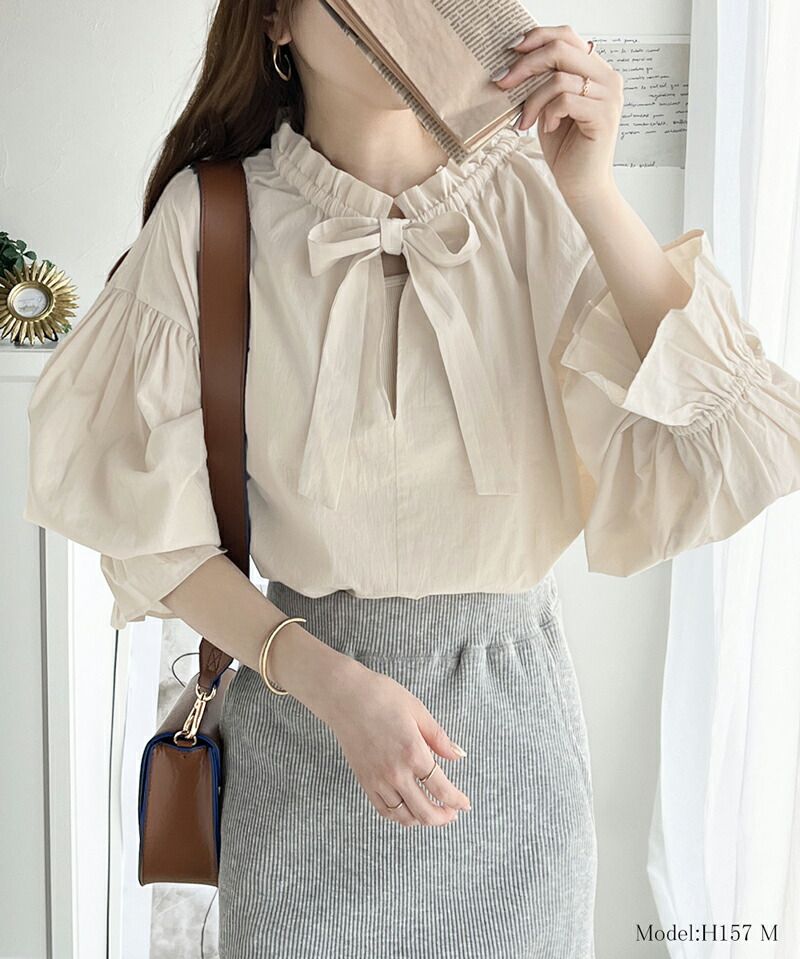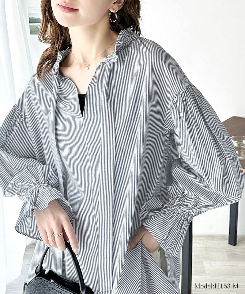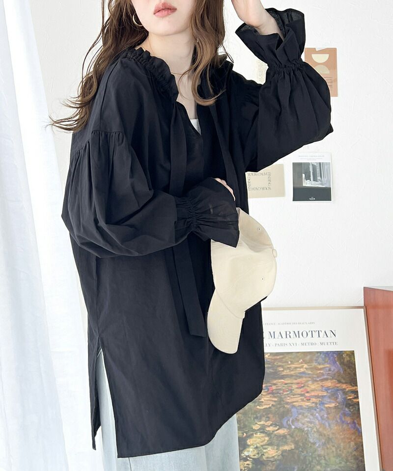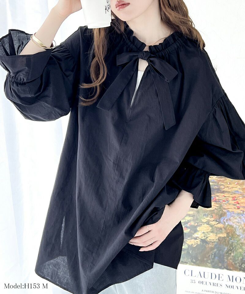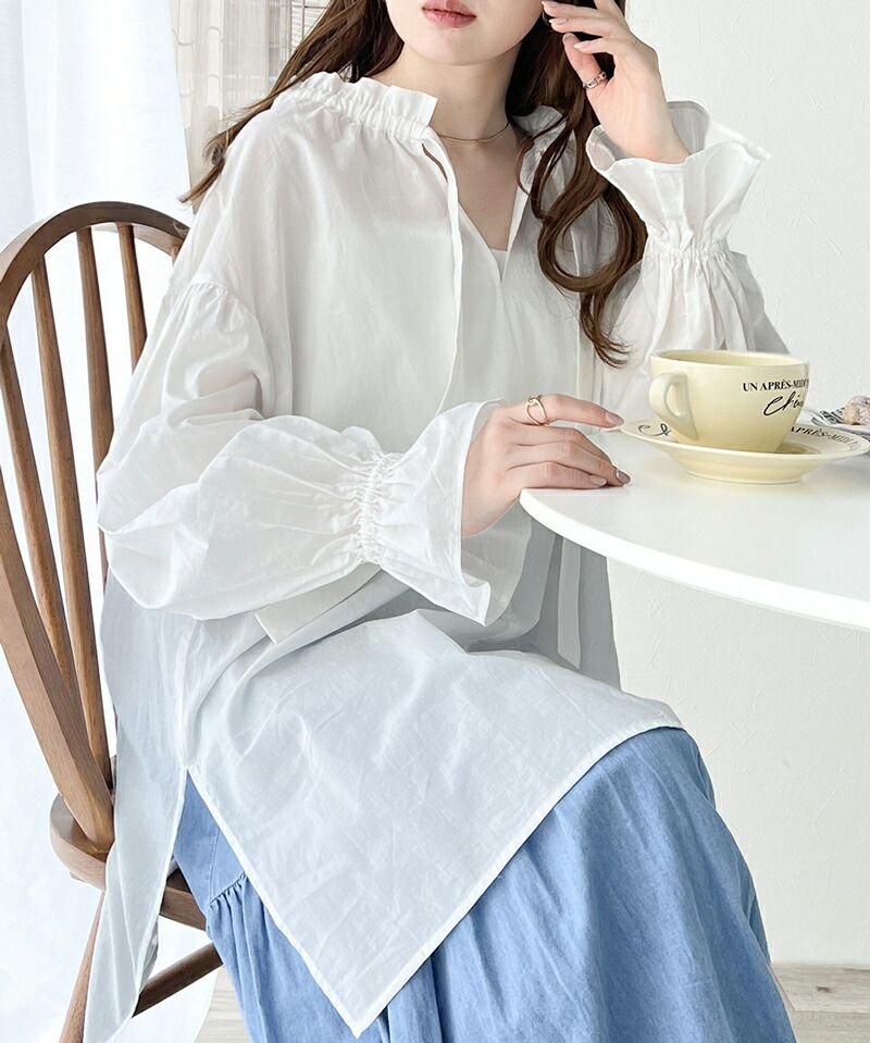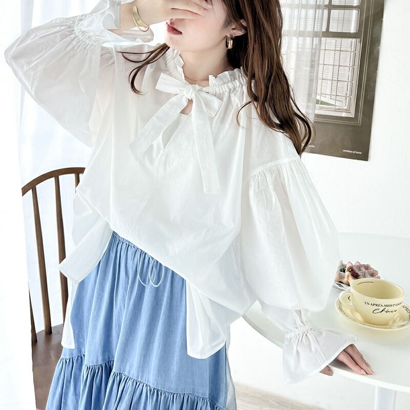 • 品名:2way糖果袖綁帶純棉長版上衣