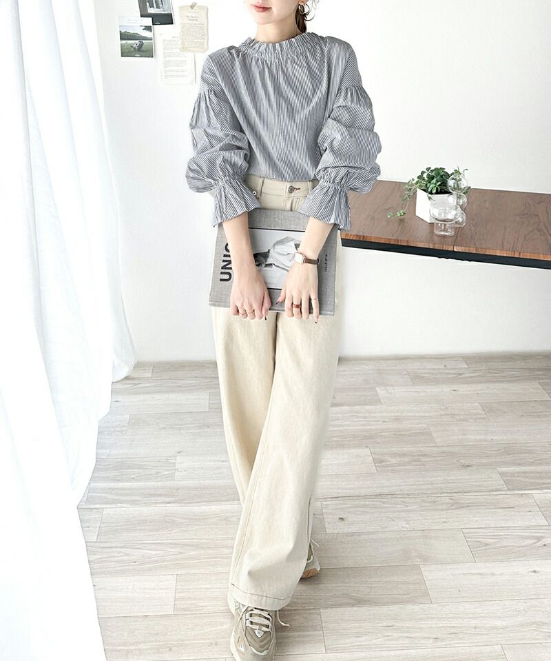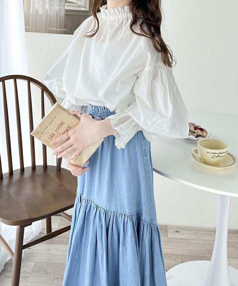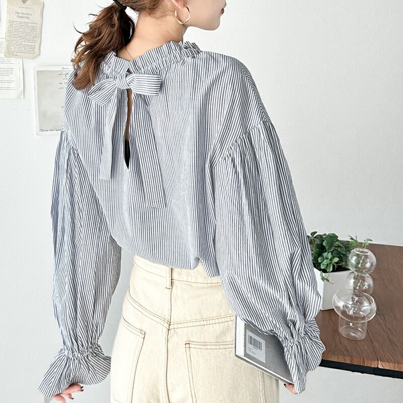 2way糖果袖綁帶純棉長版上衣
