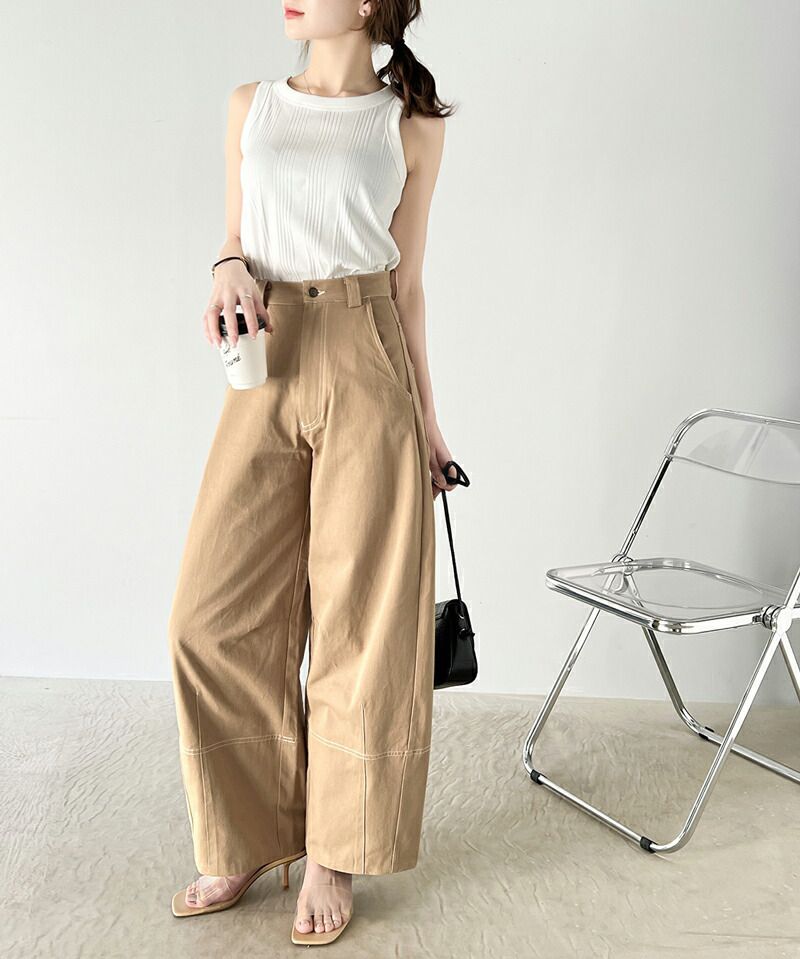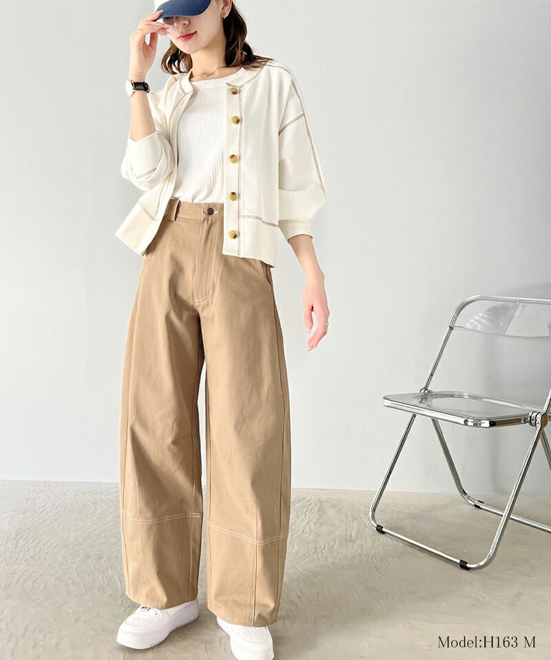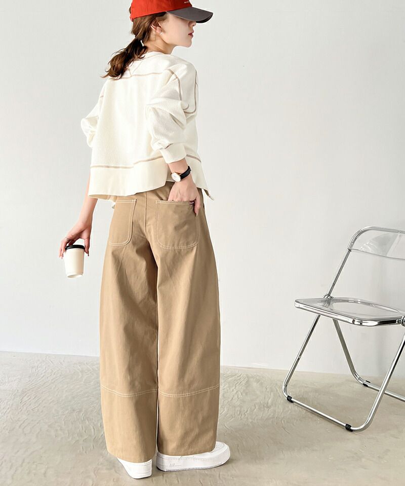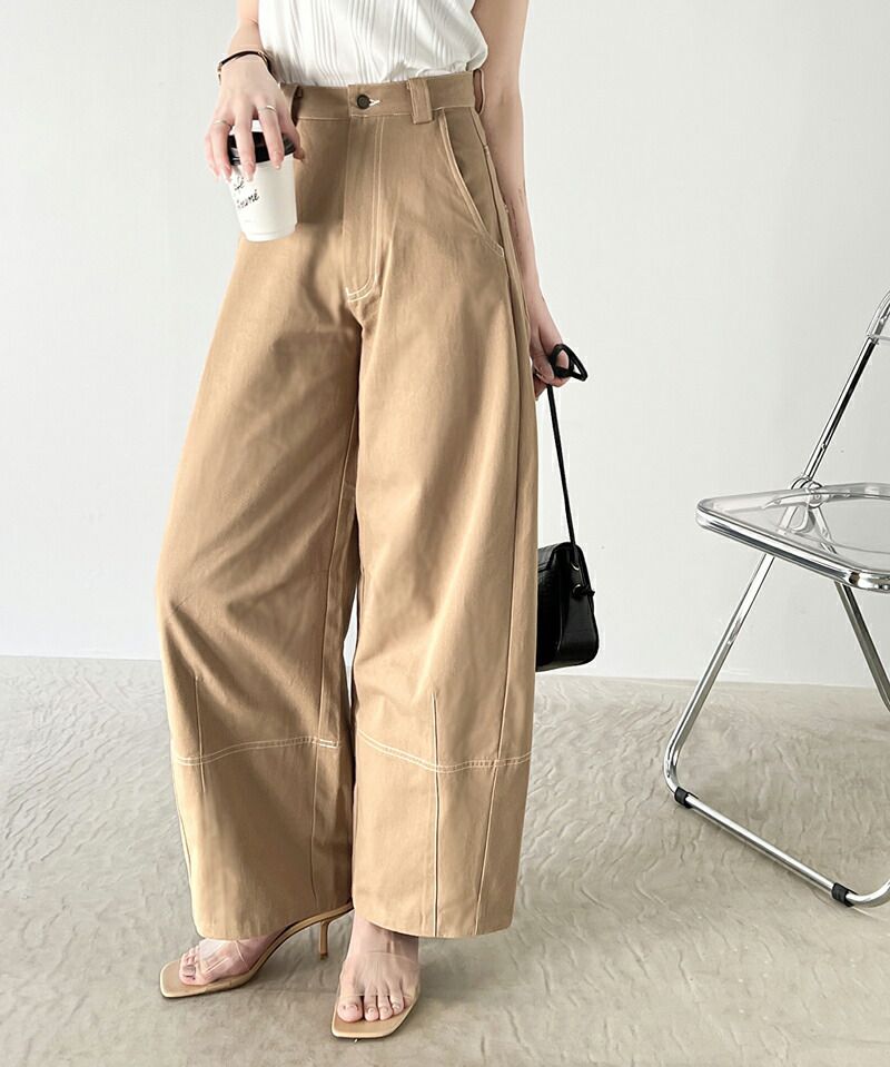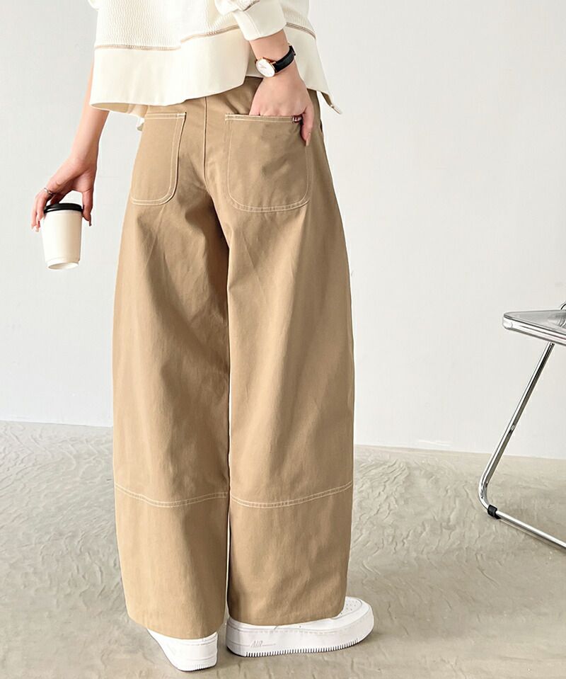 日本 Classical Elf - Java聯名 立體感縫線寬版長褲-卡其