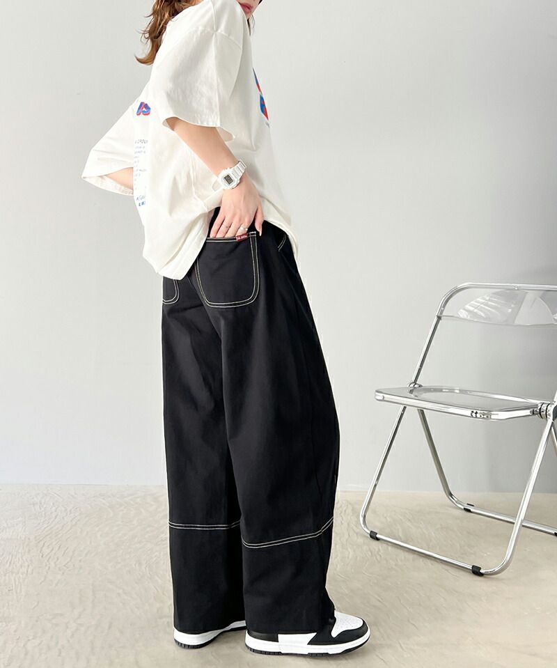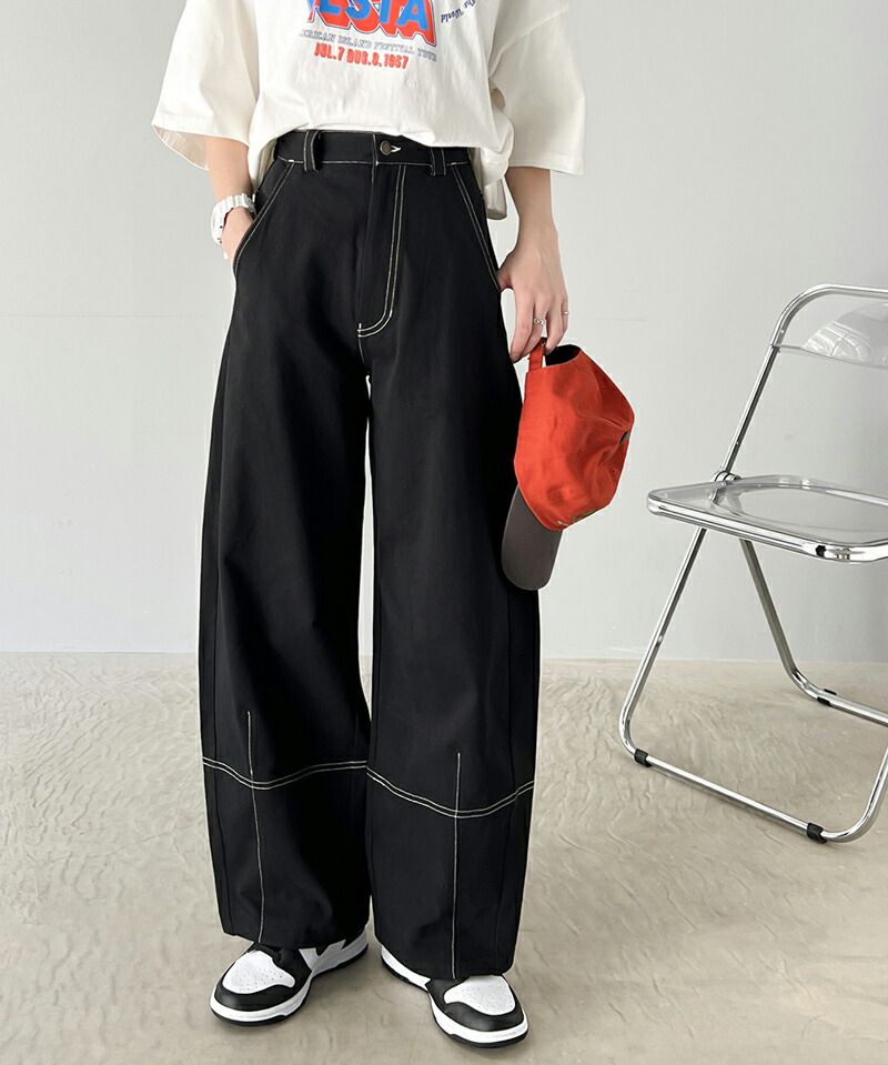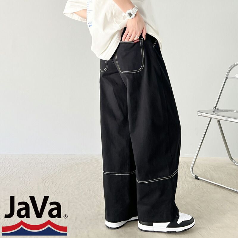 • 品名:Java聯名 立體感縫線寬版長褲