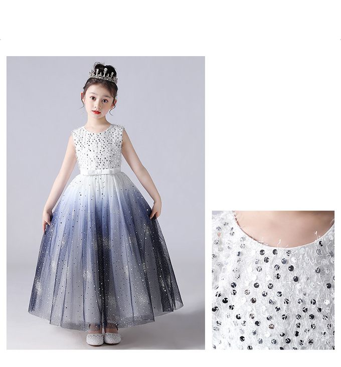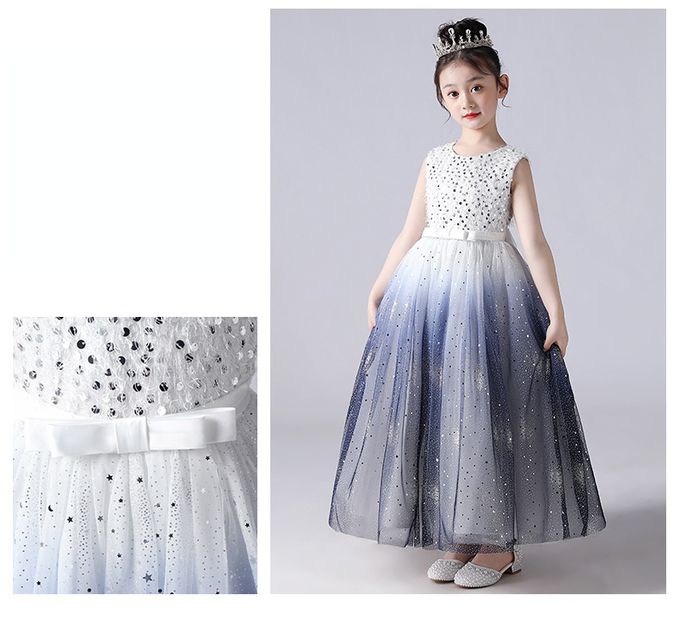 Doveark - 唯美亮片漸層無袖禮服-浪漫星空-白+藍