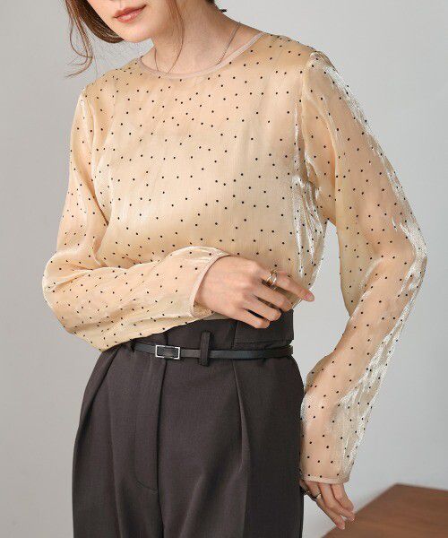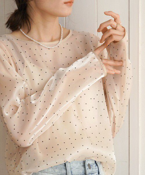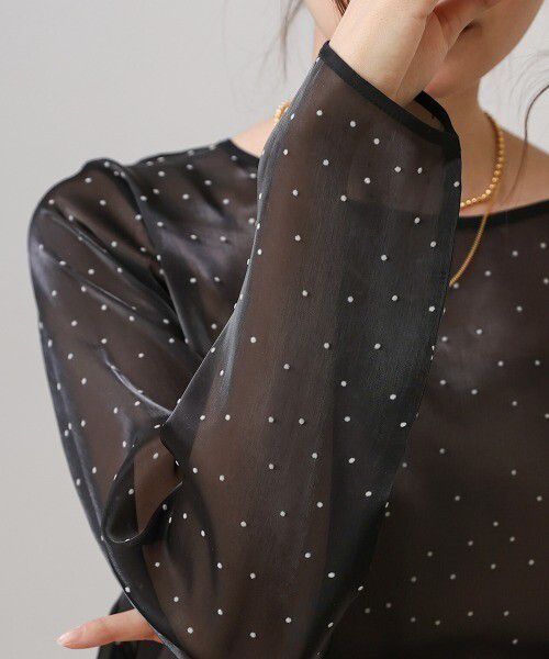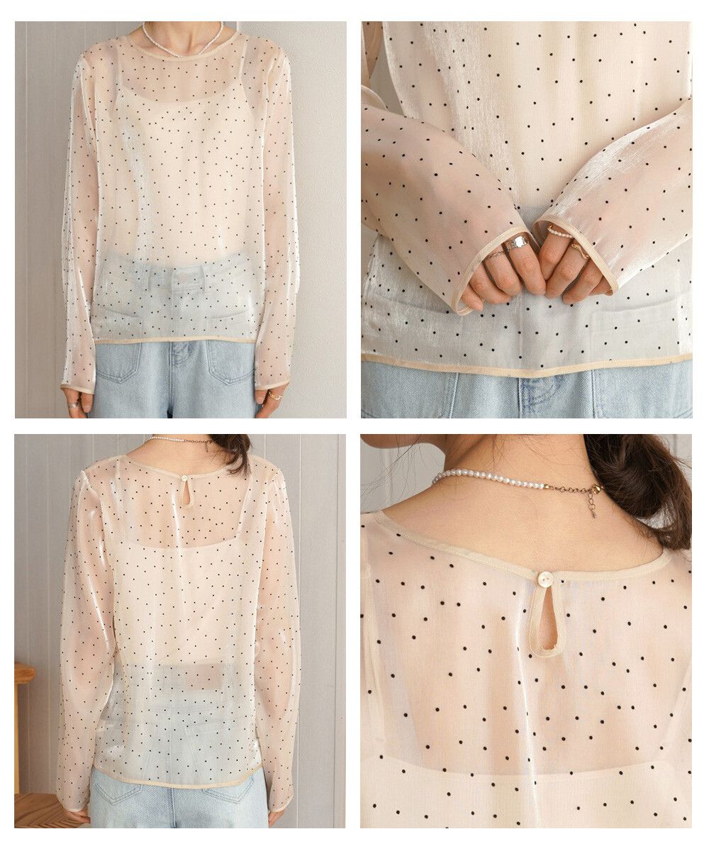 光澤閃亮透膚絨布水玉上衣