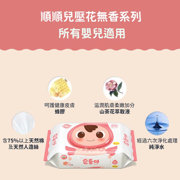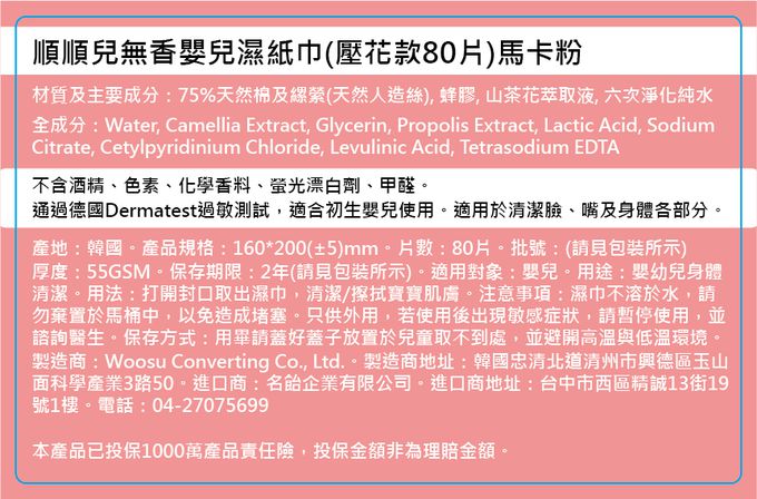 品名:無香壓花嬰兒濕巾(馬卡粉) 6包組(80抽)-效期2025/10/17