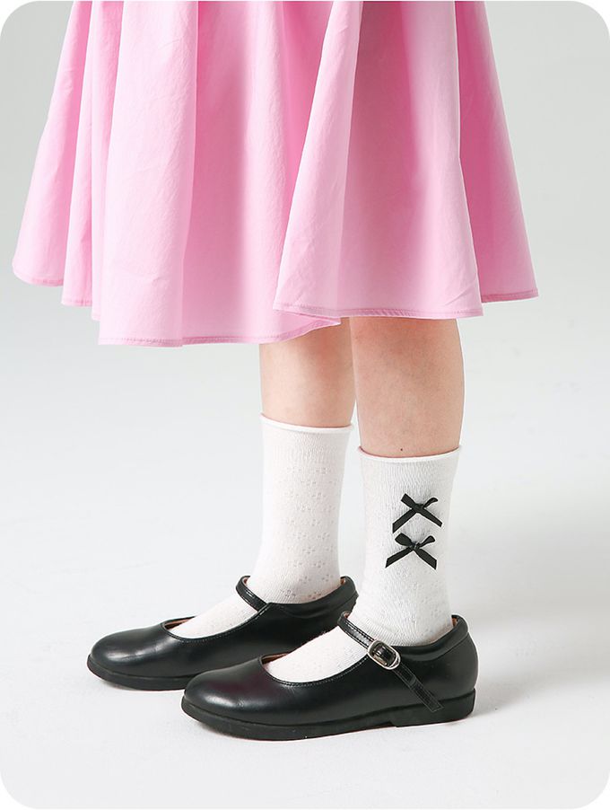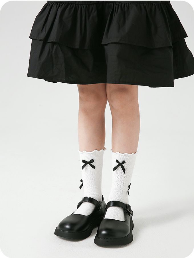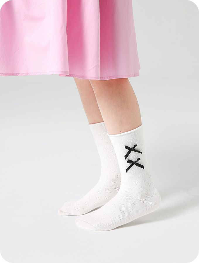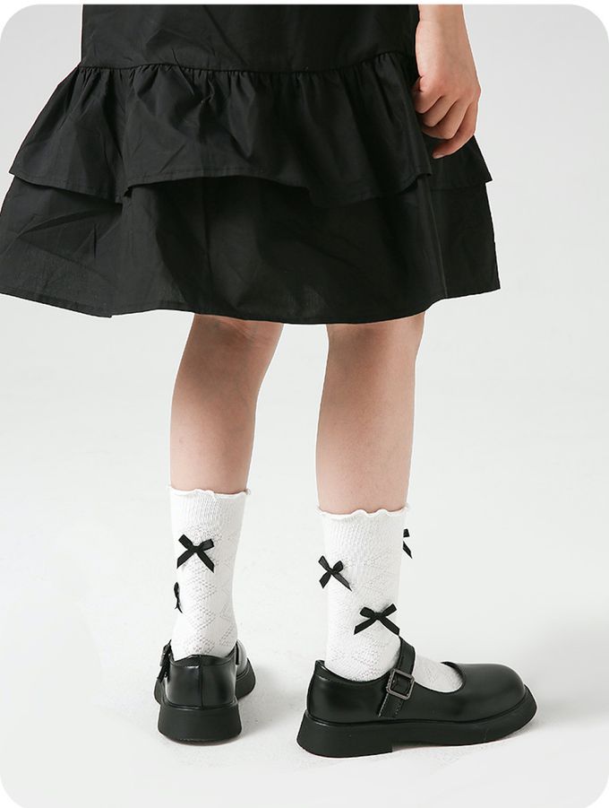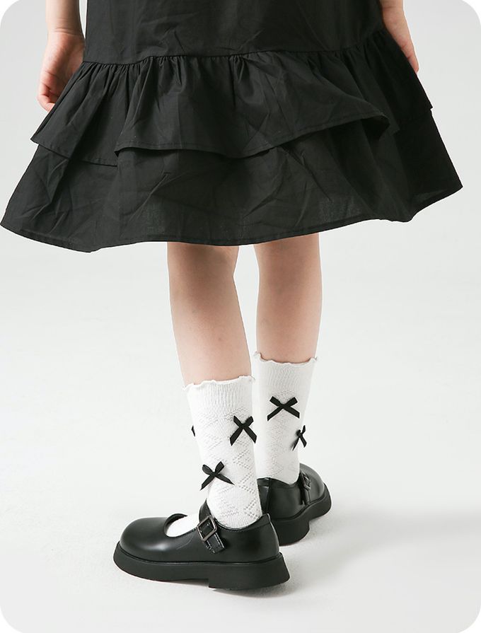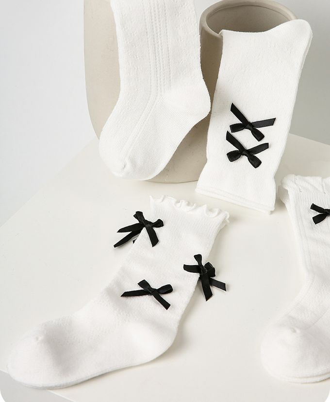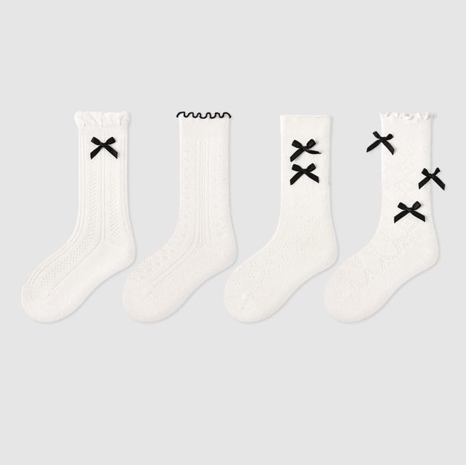 經典黑白蝴蝶結中筒棉襪-4 雙一組