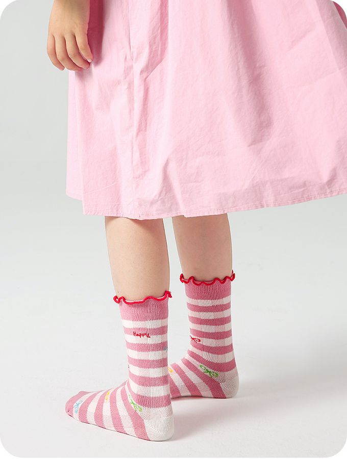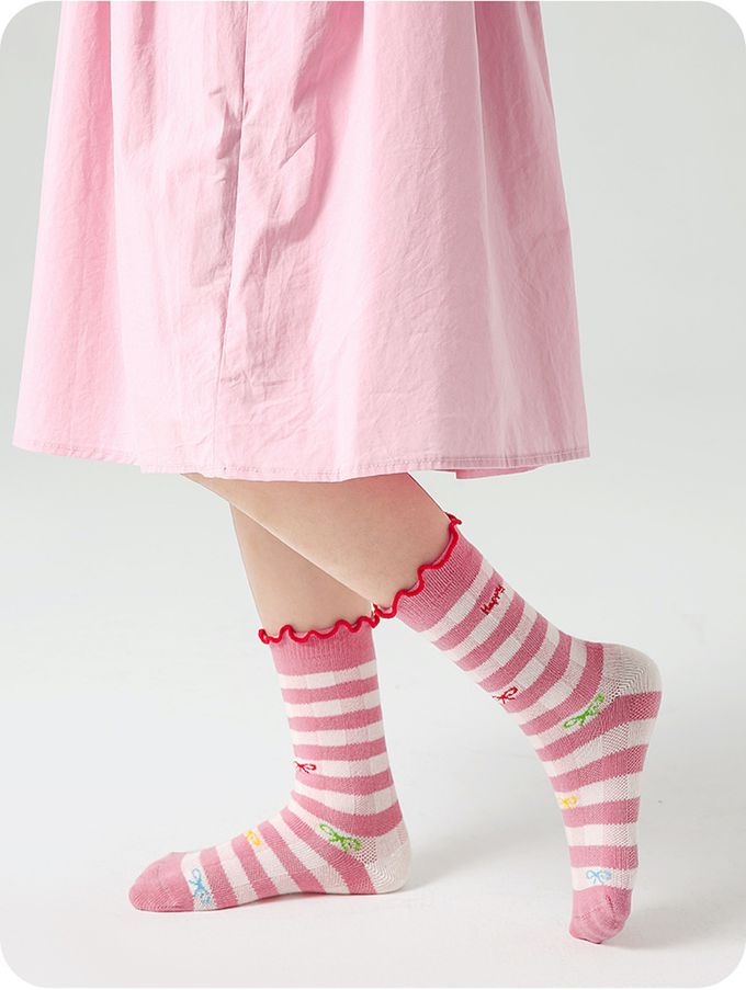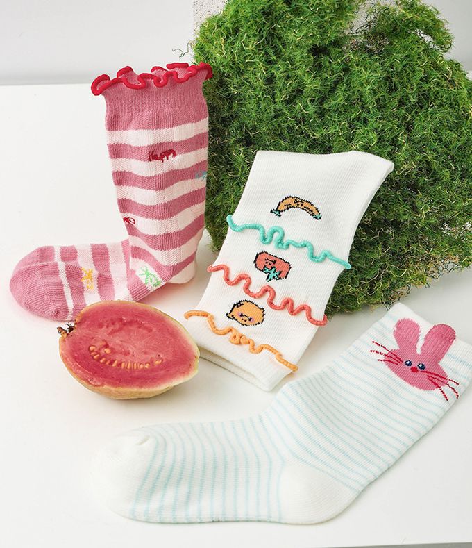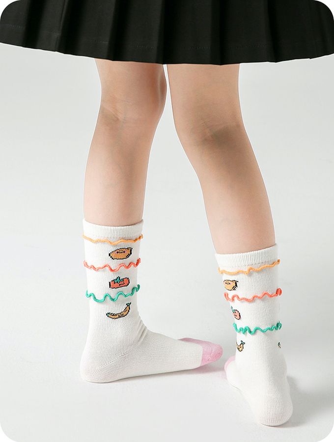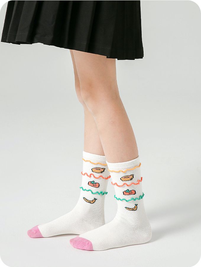 點點格子小兔水果派對木耳邊中筒棉襪-4 雙一組