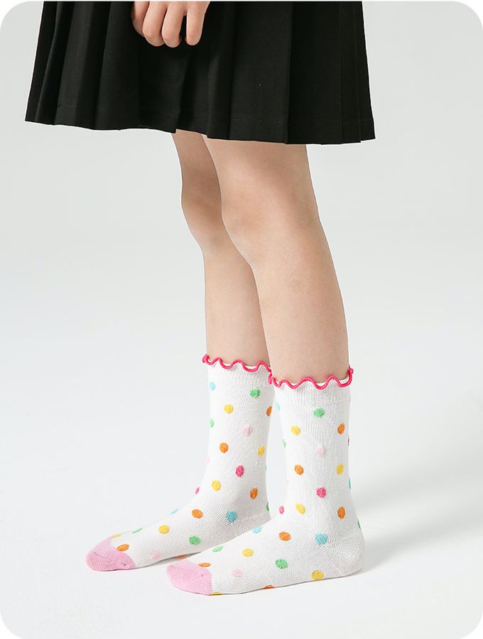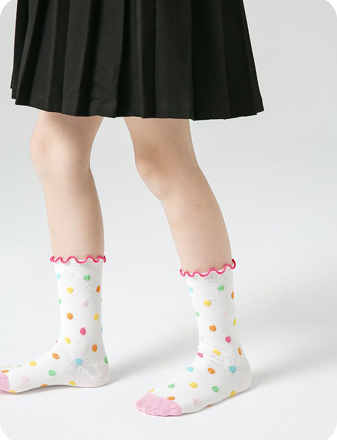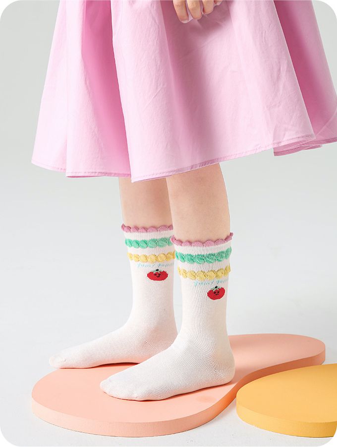 彩虹條紋小兔塗鴉木耳邊中筒棉襪-4 雙一組