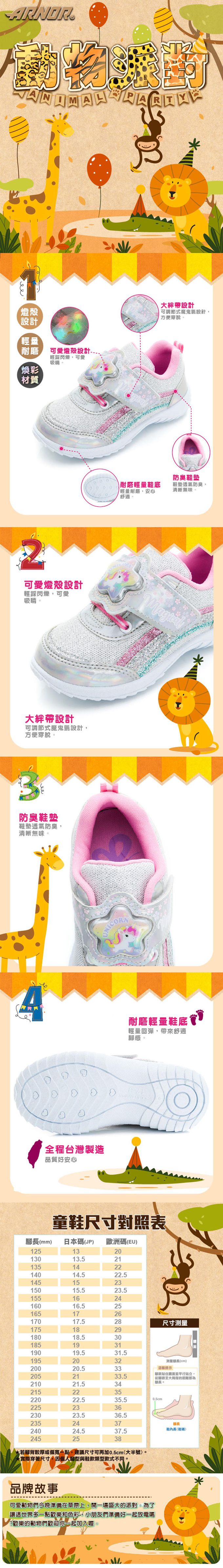 品名:ARNOR 動物派對 獨角獸 童鞋 電燈運動鞋 ASKX40109