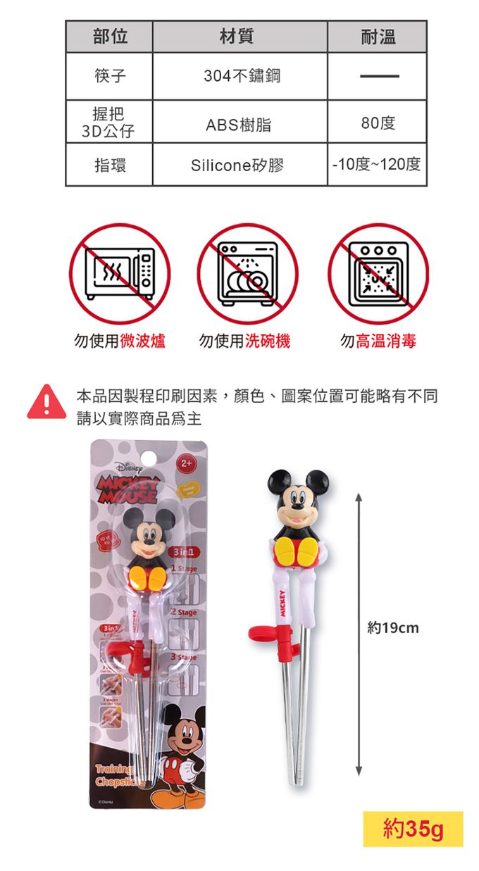 材質:筷子-304不鏽鋼 握柄/3D公仔-ABS樹脂/80度 指環-Silicone矽膠/-10~120度