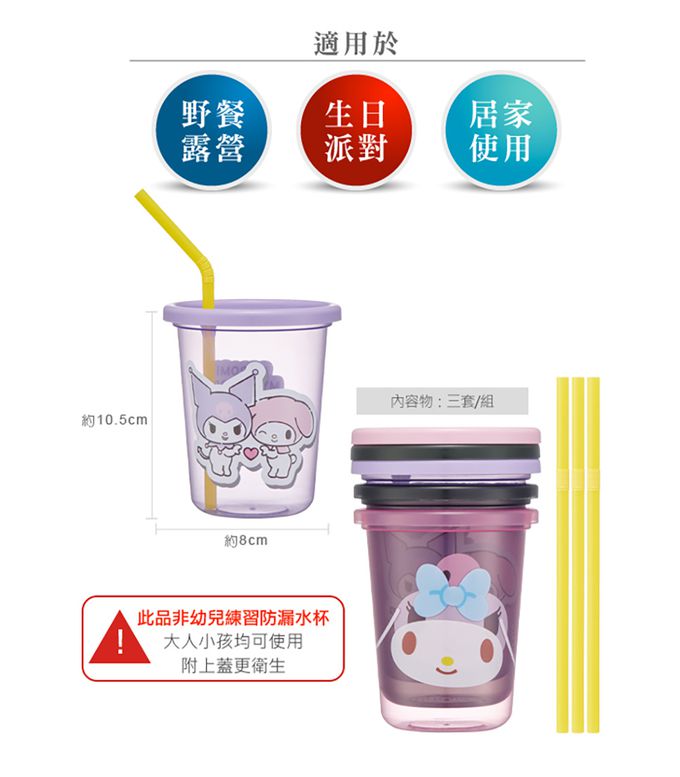 日本 SKATER - 日本製3入水杯(320ml)-美樂蒂與酷洛米